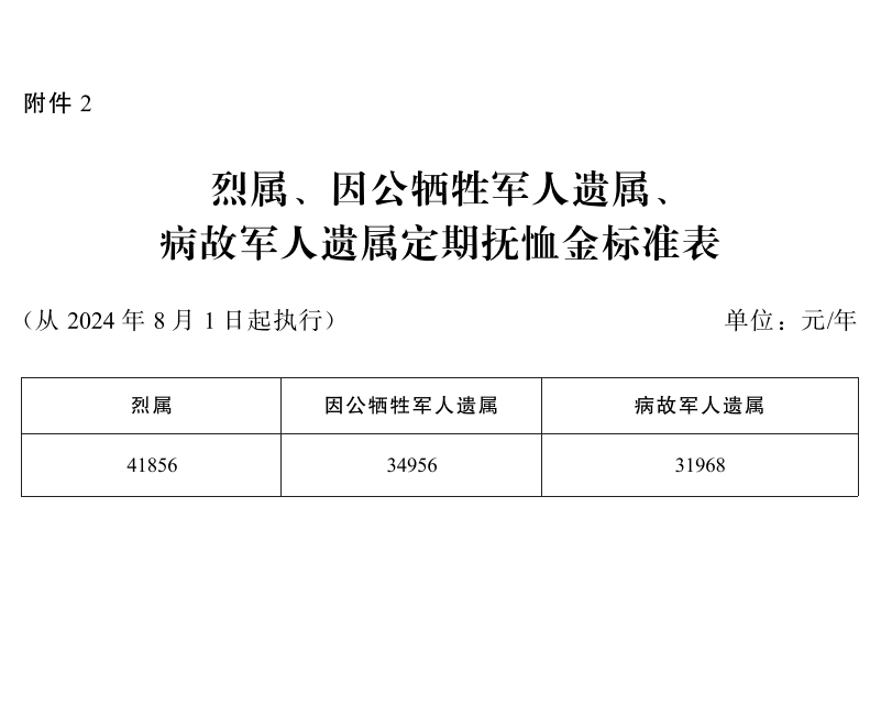 2.烈属、因公牺牲军人遗属、病故军人遗属定期抚恤金标准表