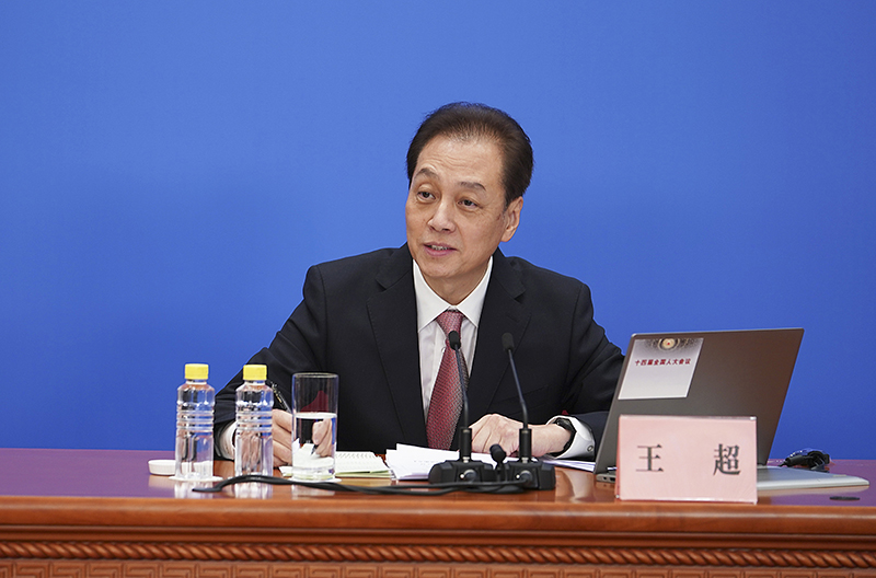 3月4日,十四届全国人大一次会议在北京人民大会堂举行新闻发布会。大会发言人王超就大会议程和人大工作相关问题回答中外记者的提问。