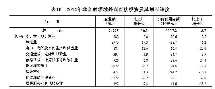 全年非金融领域新批外商直接投资企业24925家,比上年下降10.1%。实际使用外商直接投资金额1117亿美元,下降3.7%。