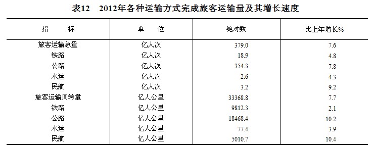 全年旅客运输总量379亿人次,比上年增长7.6%。旅客运输周转量33369亿人公里,增长7.7%。