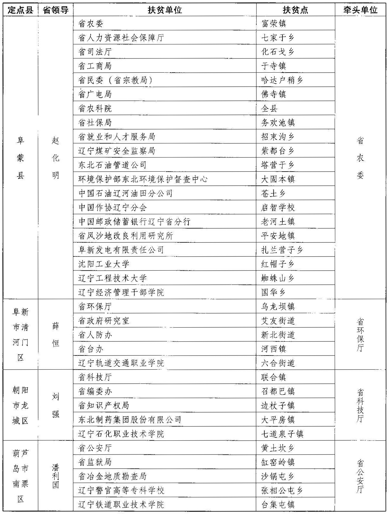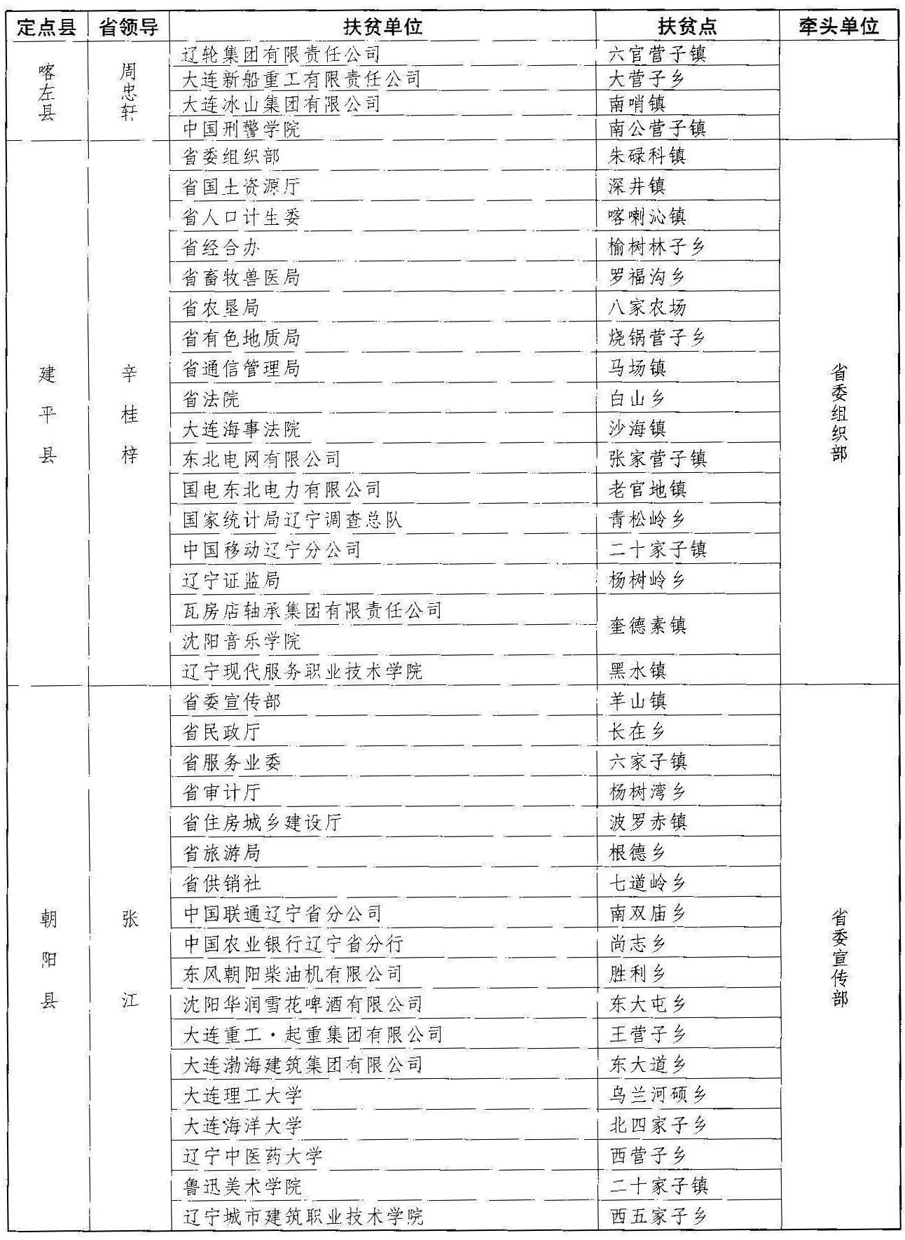 (五)进一步做好省内对口帮扶工作。在继续做好沈阳、大连、鞍山市对口帮扶阜新、朝阳、铁岭市工作的同时,积极探索发达县与贫困县的对口帮扶新模式,实施对口帮扶单位定期干部交流,实现资源与人才的互补和共同发展。