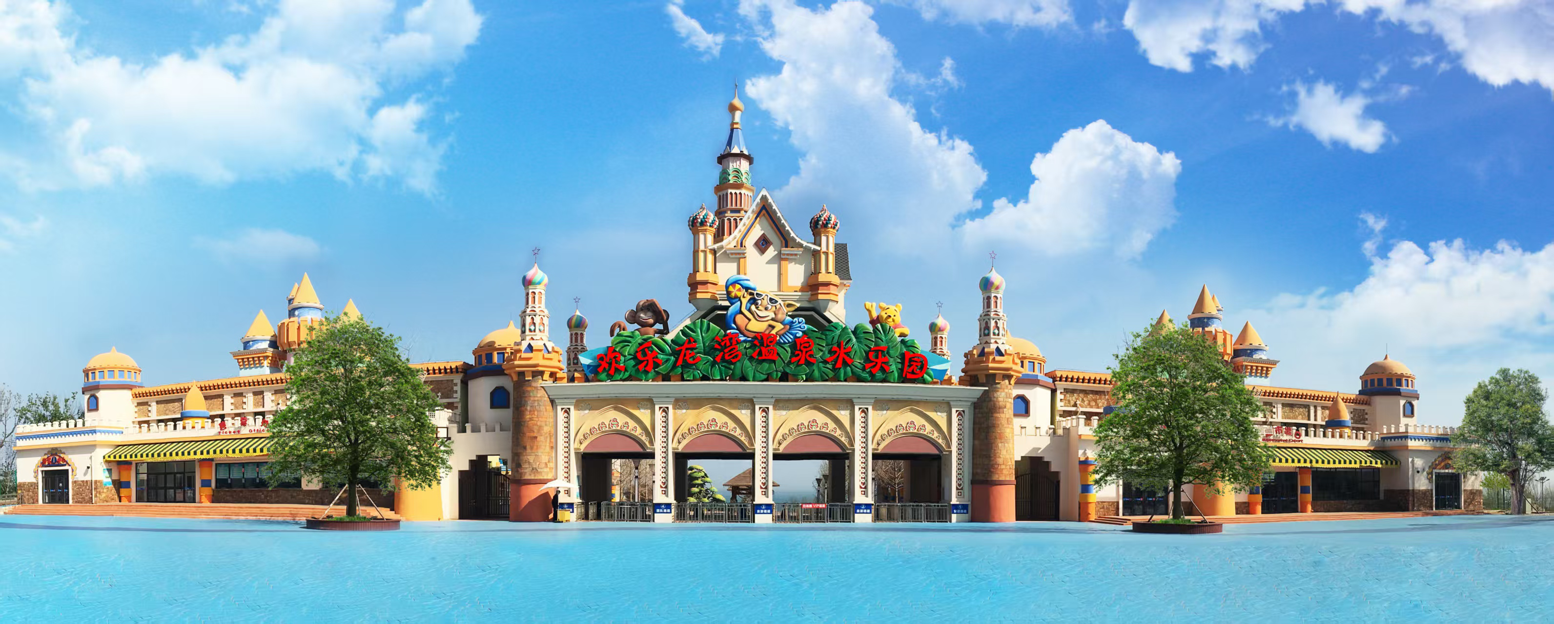 欢乐龙湾温泉水上乐园是东北地区最大温泉水乐园,园区项目包括戏水乐园、陆地乐园、亲子互动、温泉养生等游乐设备,有国内最大面积的海啸造浪池、海浪造浪池、超级龙卷风、超级漂流旋风、超级树屋(成人水寨),还有欢乐树屋(儿童水寨)、拓展冲关、巨洪峡漂流河、彩虹滑道、月亮湖和冒险岛水上亲子娱乐区、CS特战区、海洋迷宫、儿童戏水池、美食街、海神树等游乐设备,拥有国内最高的垂直滑道天上人间三组合,项目高度为28米。景区拥有16家美食餐厅、7个休闲亭及特色水吧、四桥、四广场、医疗、广播区等,是集水上游乐、观海度假、温泉休闲养生、风味餐饮为一体的超大型综合游乐水上乐园。