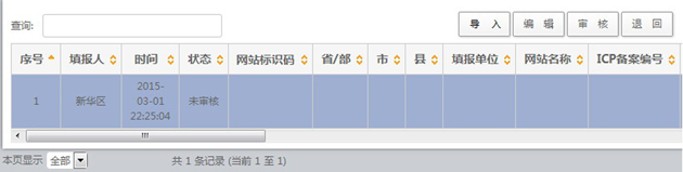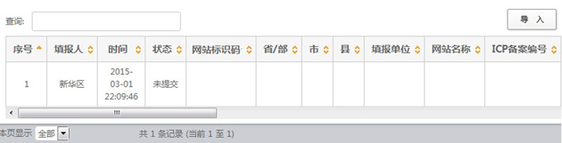 组织单位在收到上报文件后,使用账号和密码登录报送系统,在“政府网站和栏目(系统)基本信息表”的数据管理页面中,将上报文件导入系统。