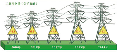 2014年,全市全部工业实现增加值364.4亿元,按可比价格计算,比上年增长5%。其中,规模以上工业增加值增长4.7%。工业用电量62亿千瓦时,比上年下降2.1%。年末全市规模以上工业企业789户。