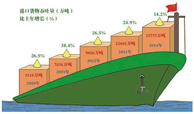 2010-2014年丹东市港口货物吞吐量及增长速度