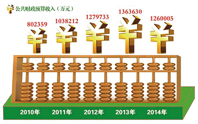 据快报数统计,全年全口径财政收入202.5亿元,比上年下降7.2%。其中,公共财政预算收入完成126亿元,下降7.6 %。在公共财政预算收入中,税收收入完成90.2亿元,比上年下降12.2%,占公共财政预算收入的71.6%。其中,营业税收入16.8亿元,下降33.9%;企业所得税7.5亿元,下降4.6%;个人所得税1.6亿元,增长8.7%;资源税5.9亿元,下降2.2%;房产税2.3亿元,增长6.7%。非税性收入完成35.8亿元,增长6.5%。