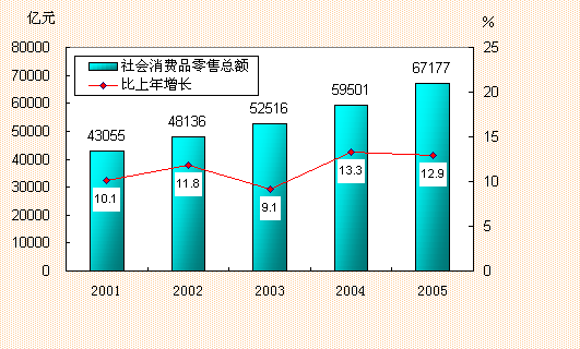 2005年,全国各族人民在党中央、国务院的领导下,以邓小平理论和“三个代表”重要思想为指导,以科学发展观统领经济社会发展全局,认真贯彻落实加强和改善宏观调控的各项政策措施,国民经济和社会发展取得明显成效。经济保持平稳较快增长,重要领域和关键环节的改革有所突破,就业和社会保障工作进一步加强,城乡居民生活不断改善,对外开放继续扩大,各项社会事业得到加强,实现了年初确定的国民经济和社会发展的预期目标,较好地完成了“十五”时期的主要任务,为“十一五”时期经济社会发展奠定了良好基础。但经济结构不合理、增长方式粗放等问题仍比较突出。