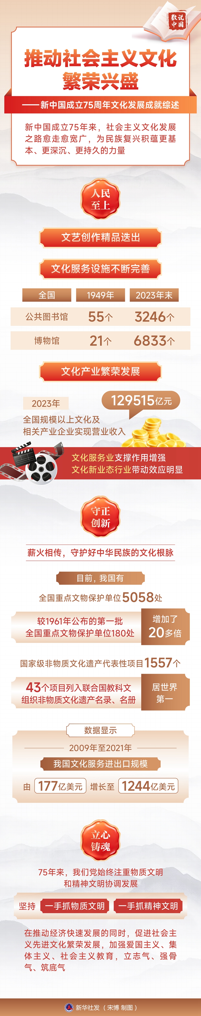 新华社北京9月17日电 题:推动社会主义文化繁荣兴盛——新中国成立75周年文化发展成就综述
