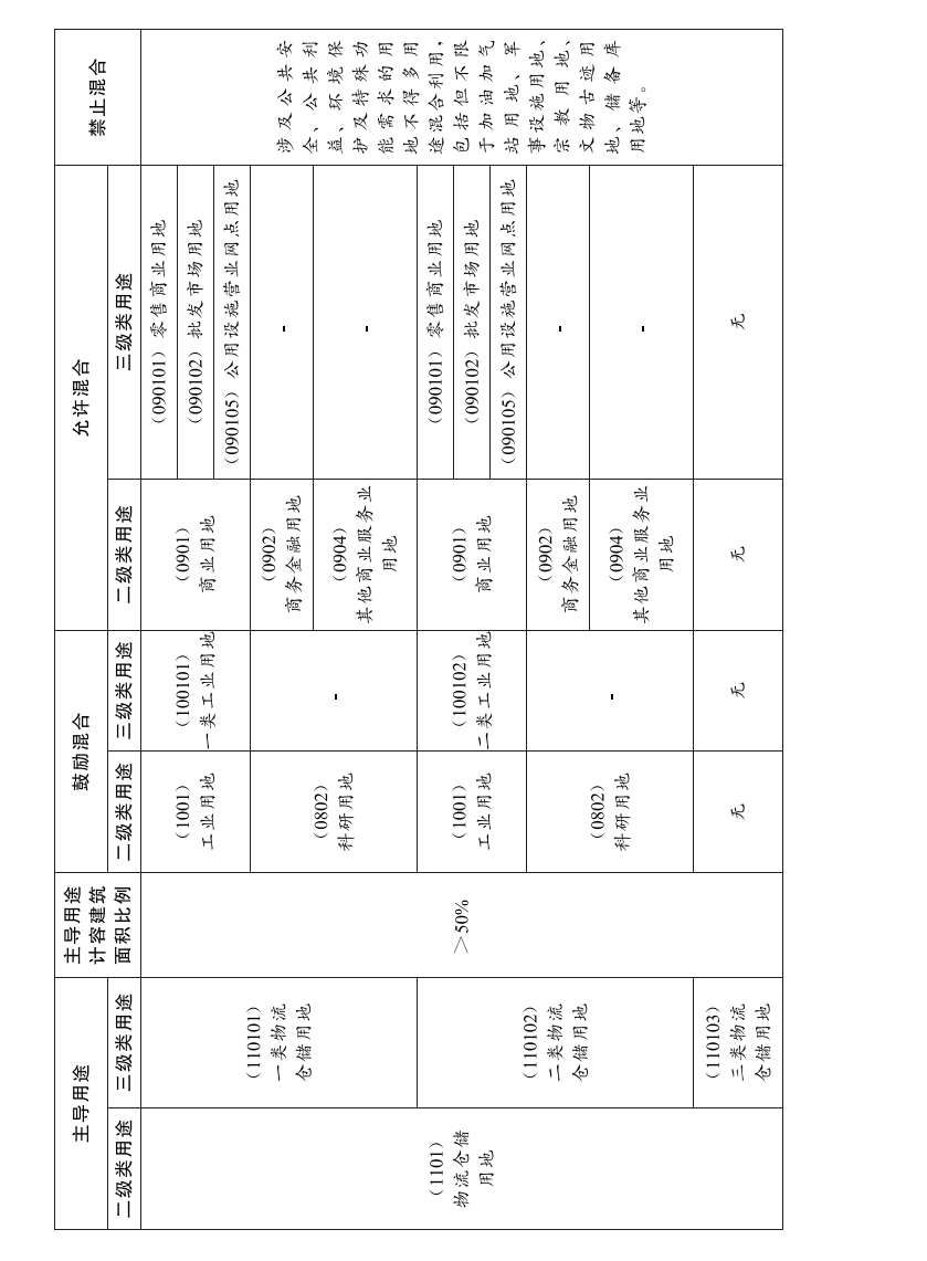 多用途混合利用应以服务产业发展为原则,鼓励工业、仓储、科研等功能用地互利的用地混合布局、融合发展。涉及公共安全、公共利益、环境保护及特殊功能需求的用地不得多用途混合利用。各地可参照《混合产业用地省级正负面清单》(见附件)对混合产业用地进行管理,除清单中鼓励、允许混合用途用地外,可根据实际需求经充分论证后补充本地区鼓励、允许混合的用途用地,制定符合当地规划要求和供地需求的混合产业用地详细清单。