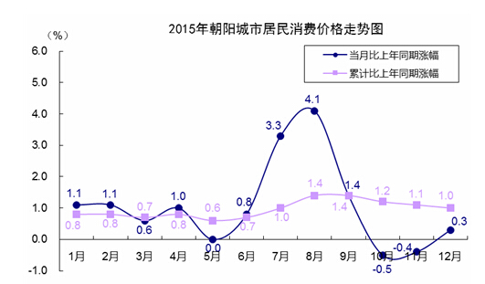 全年城市居民消费价格比上年上涨1.0%。分类别看,食品类价格上涨1.3%;衣着类价格上涨2.0%;医疗保健及个人用品类价格上涨1.3%;娱乐教育文化用品及服务类价格上涨1.9%;居住类价格下降0.7%;烟酒及用品类价格上涨1.7%;家庭设备用品及维修服务类价格上涨0.1%;交通和通信类价格下降0.2%。
