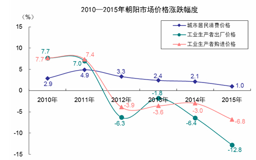 工业生产者出厂价格比上年下降12.8%,其中生产资料出厂价格下降13.5%,生活资料出厂价格上涨0.1%。工业生产者购进价格下降6.8%。