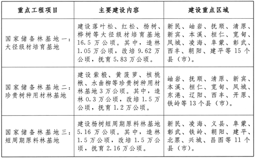 (二)推进国家储备林基地建设。通过集约栽培、改培、抚育等措施,推进国家储备林基地建设。重点推进落叶松、红松、杨树、桦树等大径级材培育基地,紫椴、黄菠萝、核桃楸、水曲柳等珍贵树种用材林基地,杨树短周期原料林基地建设,提升全省木材质量和产量。2020年全省国家储备林基地达到24.66万公顷。其中,造林2.85万公顷,改培12.62万公顷,抚育9.19万公顷。力争到2020年全省国家储备林蓄积量2000万立方米以上。