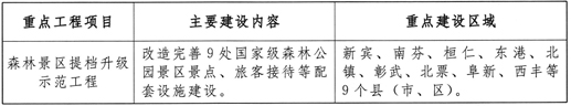 (八)加强林业生态公益产品供给。充分发挥林业生态环境资源优势,加快推进森林公园、湿地公园、沙漠公园、自然保护区等林业生态公益产品发展,着力推进国家公园建设。加强基础配套设施建设,开展破损山体植被恢复、湿地重大生态修复工程建设,提升和完善森林公园、湿地公园、沙漠公园、自然保护区建设和管理水平,为人民群众提供生态良好、环境优美的休憩运动场所。到2020年,全省省级以上森林公园、湿地公园、沙漠公园、自然保护区分别由2015年的71处、34处、0个、35个分别增加到72处、40处、3个、36个。