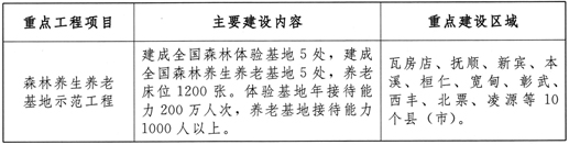 (七)大力发展森林健康养生养老产业。加强森林体验中心、森林养生养老中心、森林浴场、解说步道、健身步道等基础配套设施建设。重点开展全国森林养生养老基地示范工程建设,引导和鼓励民间资本参与森林养生养老基地建设,构建集森林体验、教育、文化、休闲、医疗、康养于一体的森林养生养老基地,加快森林养生养老产业向专业化、精细化、高品质和价值链高端延伸。