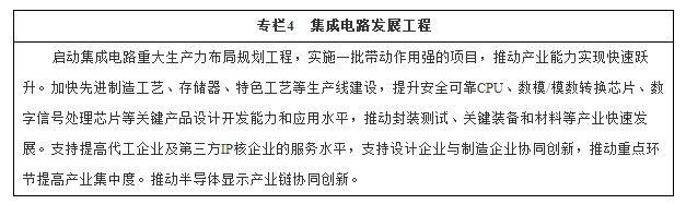 提升核心基础硬件供给能力。提升关键芯片设计水平,发展面向新应用的芯片。加快16/14纳米工艺产业化和存储器生产线建设,提升封装测试业技术水平和产业集中度,加紧布局后摩尔定律时代芯片相关领域。实现主动矩阵有机发光二极管(AMOLED)、超高清(4K/8K)量子点液晶显示、柔性显示等技术国产化突破及规模应用。推动智能传感器、电力电子、印刷电子、半导体照明、惯性导航等领域关键技术研发和产业化,提升新型片式元件、光通信器件、专用电子材料供给保障能力。