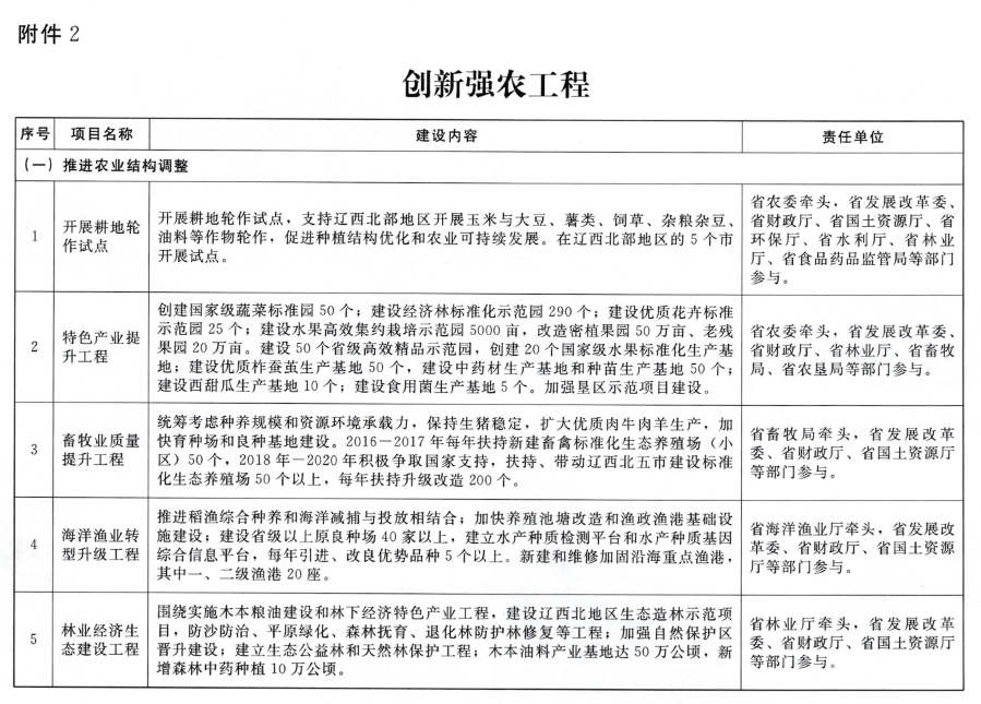 1.调整优化种植结构。引导农民尊重和适应市场变化要求,在巩固2016年调减200万亩玉米种植面积成果基础上,调减非适宜区玉米种植面积,稳定主产区粮食产能,扩大优质水稻、专用大豆、特色杂粮、高淀粉马铃薯种植面积,做强油料、蔬菜、水果等优势产业,做精食用菌、中药材、小浆果、花卉苗木、柞蚕等特色产业。实施好设施农业提质增效工程和1000万亩水果振兴计划,提升蔬菜标准化生产基地和高效精品果园建设水平。(牵头单位:省农委,配合单位:省发展改革委、省财政厅、各市政府)