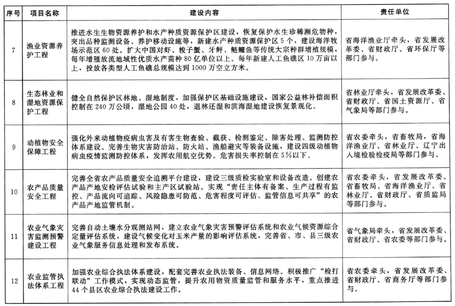 6.大力发展现代种业。以市场需求为导向,加快培育和推广一批适应机械化、轻简化、优质高产多抗广适的“绿色”新品种,发展工厂化育苗。建立辽宁省农业高新技术创新中心;建立覆盖全省不同农业生态区域的综合性品种试验、鉴定评价站点;建立省级动植物种质资源库、主要动植物品种标准样品库;加强畜牧业繁育体系、渔业优质苗种繁育及林果业苗木基地建设。推进种业科研成果权益分配改革,充分调动科技人员创新和服务的积极性。(牵头单位:省农委,配合单位:省发展改革委、省科技厅、省财政厅、省海洋渔业厅、省林业厅、省畜牧局、各市政府)