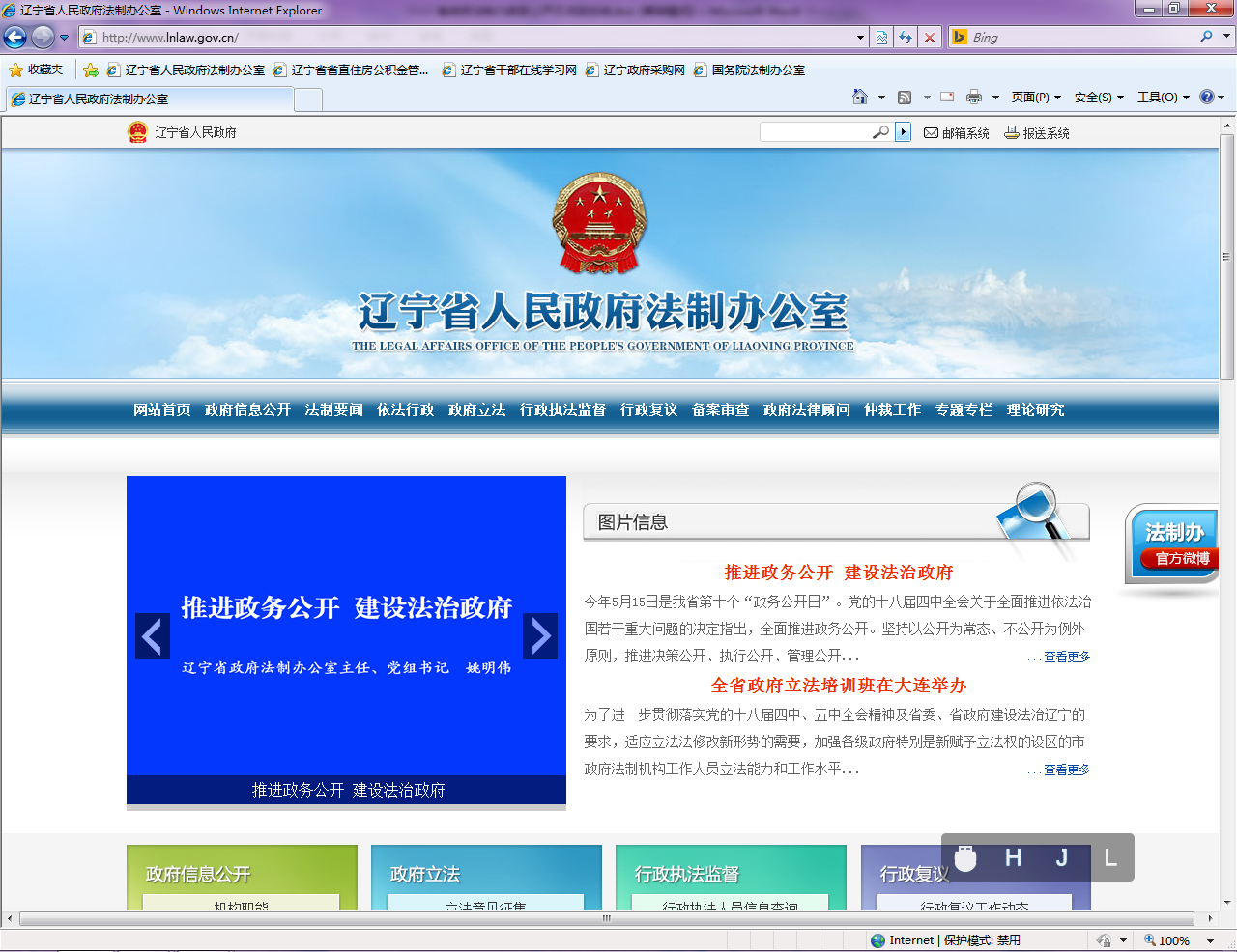 接到《辽宁省人民政府办公厅关于组织开展全省第十届“5•15政务公开日”活动的通知》(辽政办明电〔2016〕32号)文件后,办主要领导立即作出批示,要求认真组织,积极开展宣传活动,并召开会议专门听取了本次活动的实施方案。鉴于我办实际情况,确定本次宣传活动在我办门户网站“辽宁法制网”上进行。根据第九届“5•15政务公开日”确定的“推进政务公开,保障改善民生”主题,把“5•15政务公开日”活动重心放在“行政权力运行、依法行政”等方面信息公开,加强制度机制建设,不断增强政府信息公开实效,进一步提高政府公信力,促进法治政府、创新政府、廉洁政府建设。在辽宁省人民政府法制办公室网站首页要闻栏目刊登了省政府法制办主任、党组书记姚明伟同志的署名文章《推进政务公开 建设法治政府》(图2)。文章从“加大工作力度,努力打造透明公开的法治政府”、“加大透明力度,持续推进政府政务公开工作”、“认真履行省全面推进依法行政工作领导小组办公室职责,加强推进全省政务公开工作”等几方面阐述了做好政务公开工作对于发展社会主义民主政治,提升国家治理能力,增强政府公信力执行力,保障人民群众知情权、参与权、表达权、监督权具有重要意义。