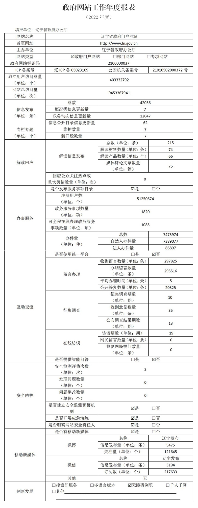 辽宁省政府门户网站工作年度报表