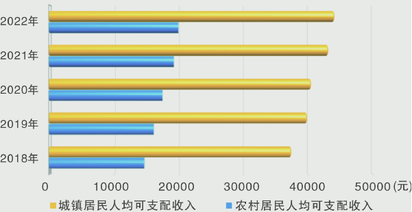 全年全体居民人均可支配收入36089元,比上年增长2.8%。其中,城镇居民人均可支配收入44003元,增长2.2%;农村居民人均可支配收入19908元,增长3.6%。