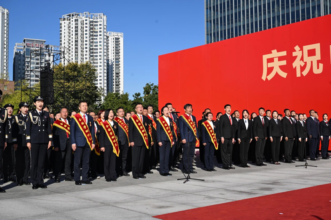 仪式前,由劳动模范、退伍军人、机关干部、少先队员等组成的合唱团进行了合唱表演。《我和我的祖国》《今天是你的生日》《没有共产党就没有新中国》《阔步新时代》,嘹亮的歌声响彻广场上空。学生代表在仪式上献词,表达了在强国建设、民族复兴新征程上勇担重任、勇毅前行的信心决心。