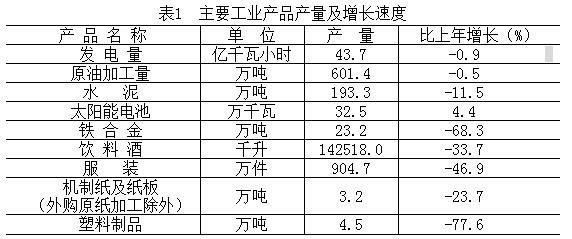 全年规模以上工业实现主营业务收入1408.0亿元,比上年下降37.6%;税金总额90.8亿元,下降39.6%;利润总额74.8亿元,下降45.9%。