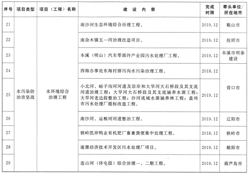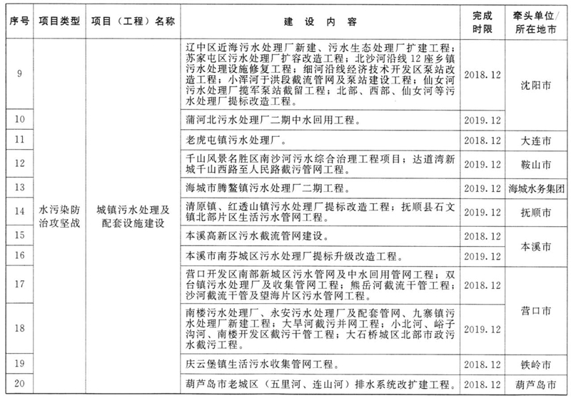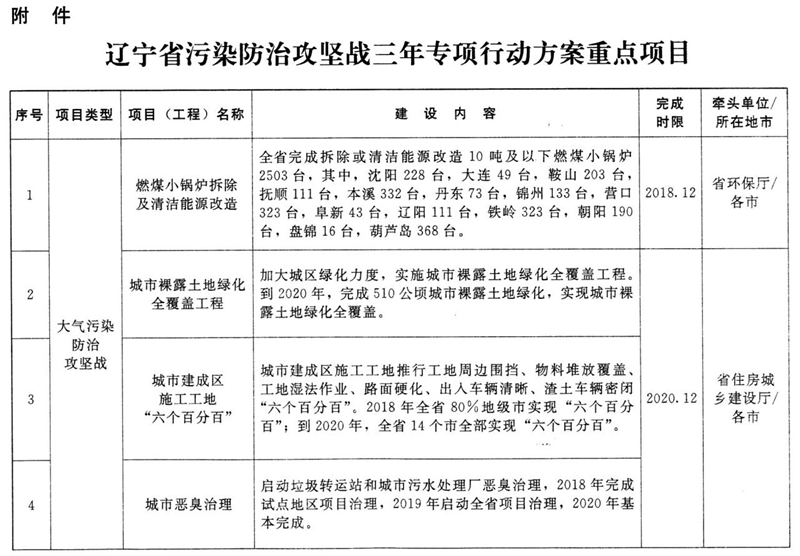附件:辽宁省污染防治攻坚战三年专项行动方案重点项目