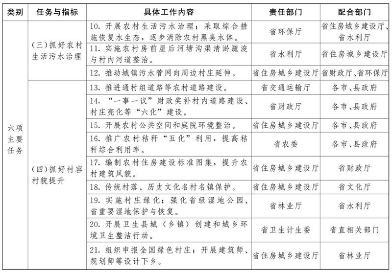 2019年,突出重点,整体整治。农村生活垃圾处置体系覆盖85%行政村,新建生活污水集中收集处理系统150套,农村卫生厕所普及率达到83%,创建省级及以上卫生县城(乡镇)不少于10个,农村公路新改建工程3300公里,“一事一议”财政奖补村内道路建设4500公里,农作物秸秆综合利用率达到86%,建设300个美丽乡村,实现农村人居环境明显改善。