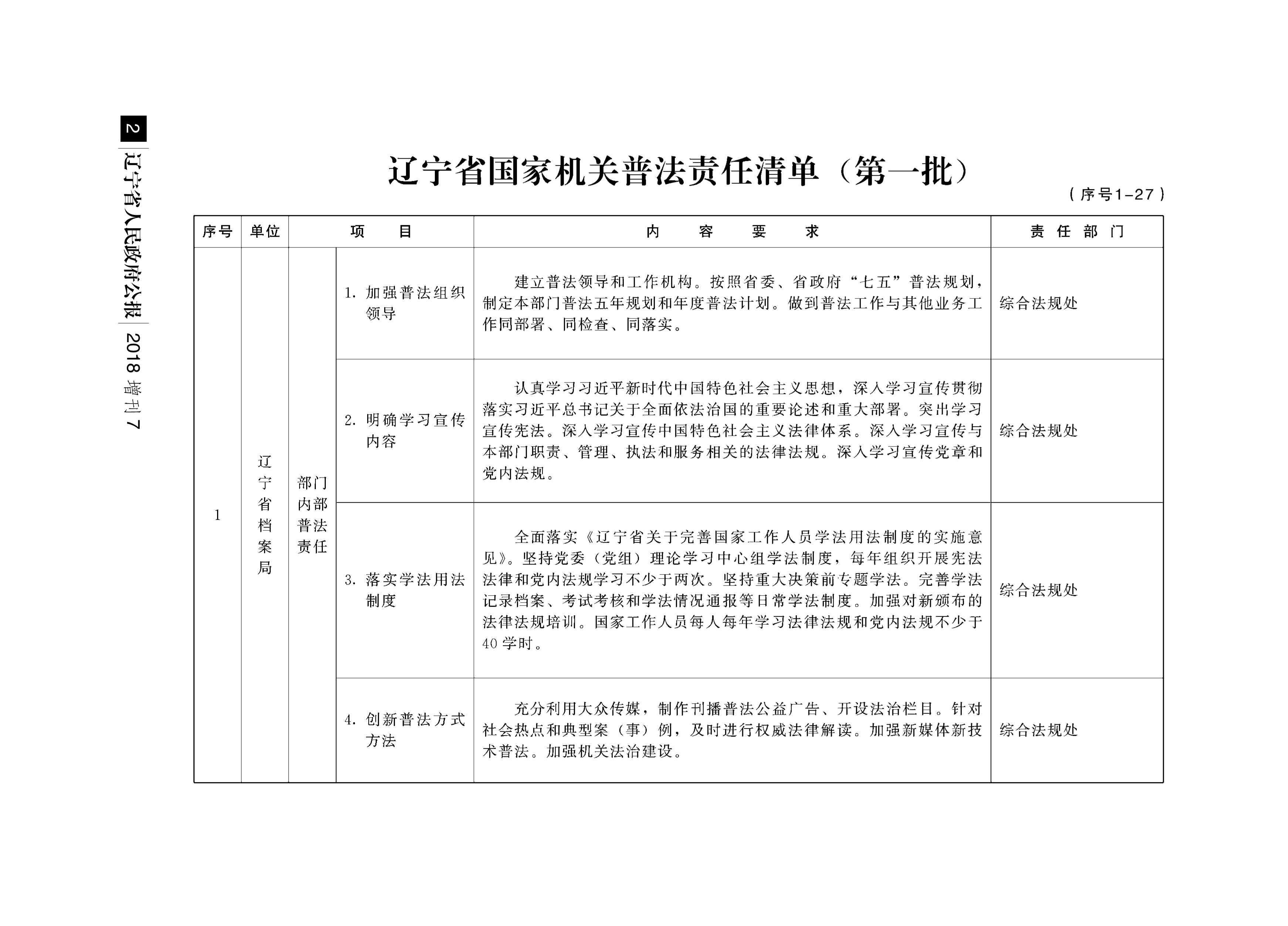 关于印发《辽宁省国家机关普法责任清单