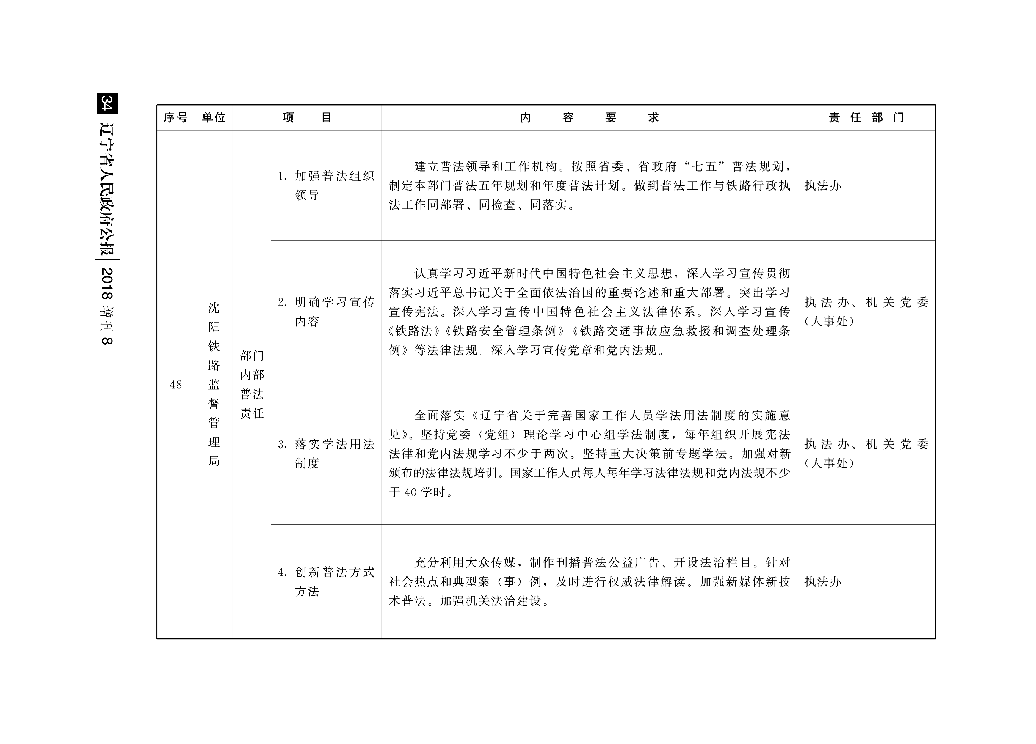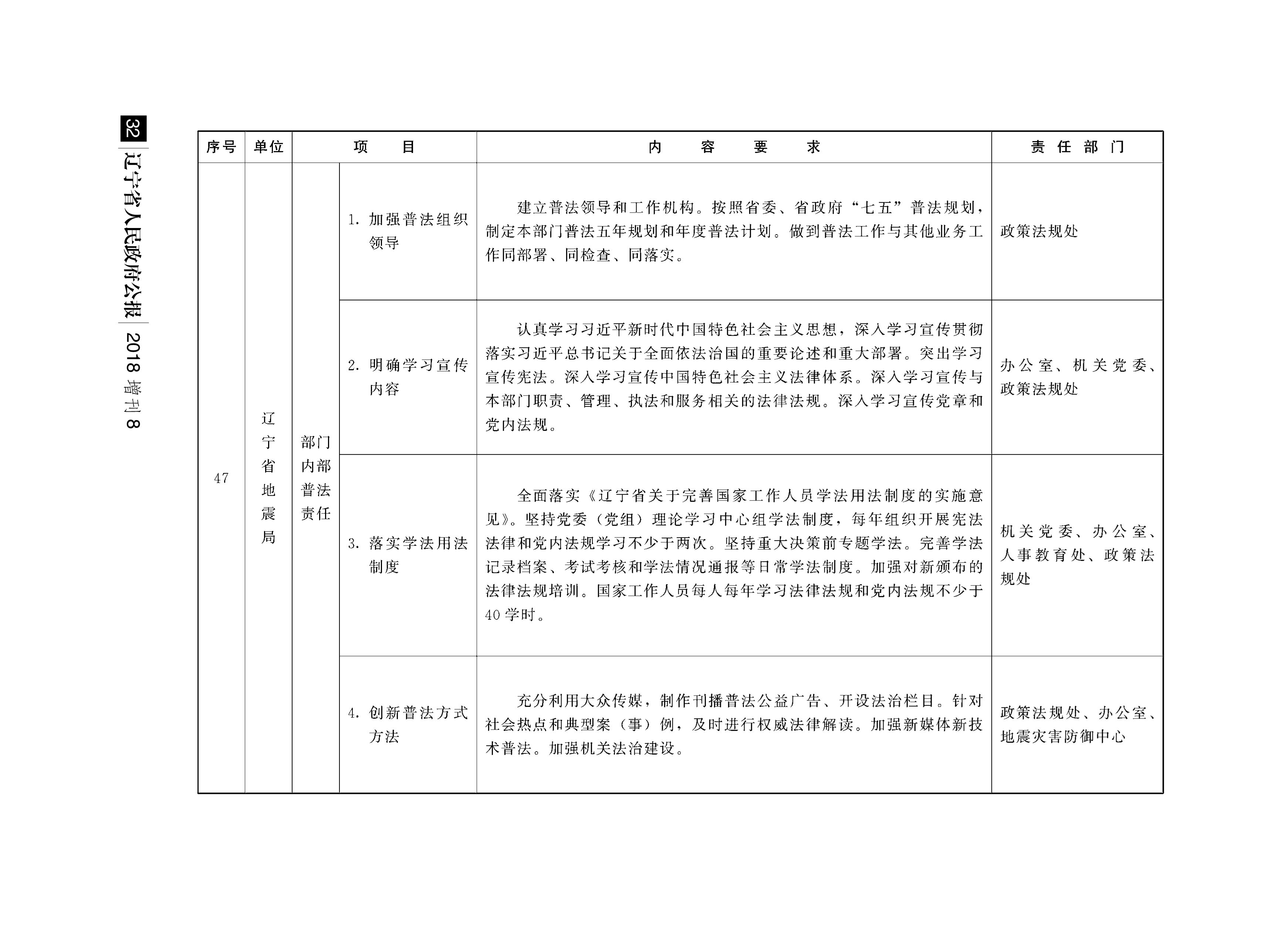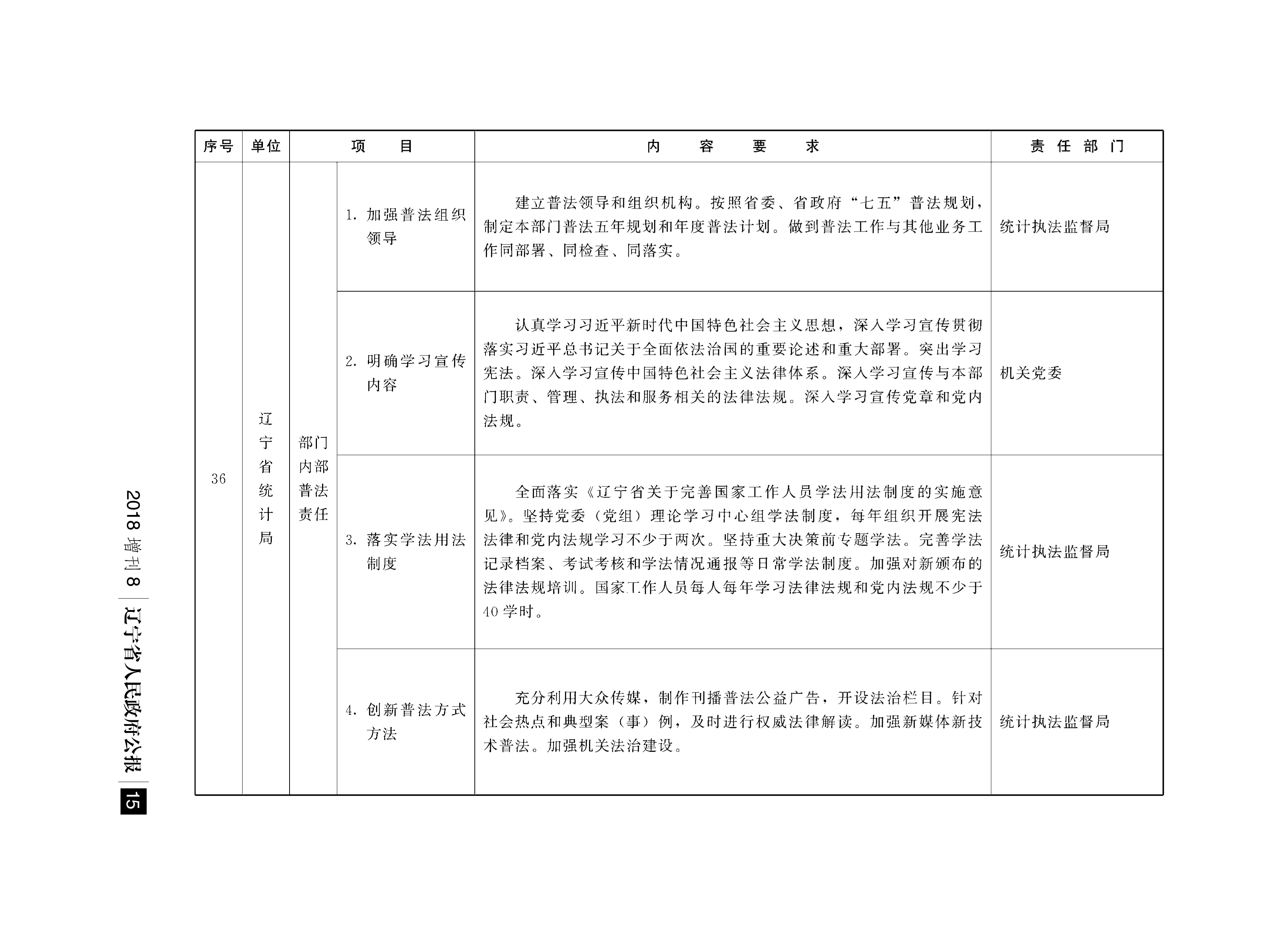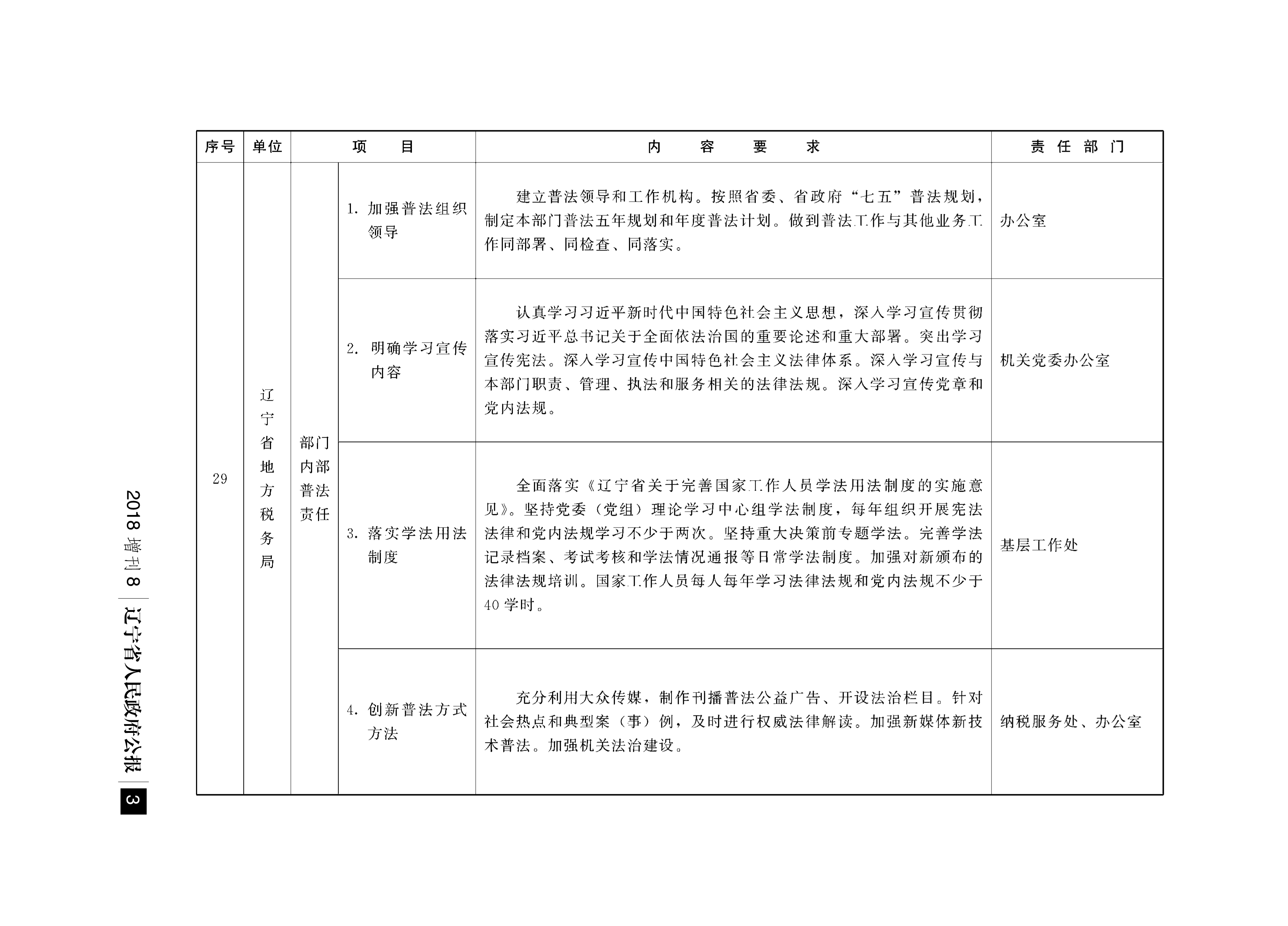 建立普法责任清单制度,是贯彻落实国家机关“谁执法谁普法”普法责任制的重要举措。普法责任清单明确了国家机关应当承普法工作责任,是开展普法工作的重要遵循。国家机关要把普法作为法治辽宁、平安辽宁建设的基础性工作,切实纳入本部门本单位工作总体安排,做到与其他业务工作同部署、同检查、同落实,努力在全社会形成尊法学法守法用法的浓厚氛围。按照普法责任制要求,建立健全普法领导和工作机构,明确普法任务和工作要求,制定普法中长期规划和年度普法计划,明确责任部门、责任人员和时限,并根据相关法律法规、规范性文件的调整,及时进行补充完善。