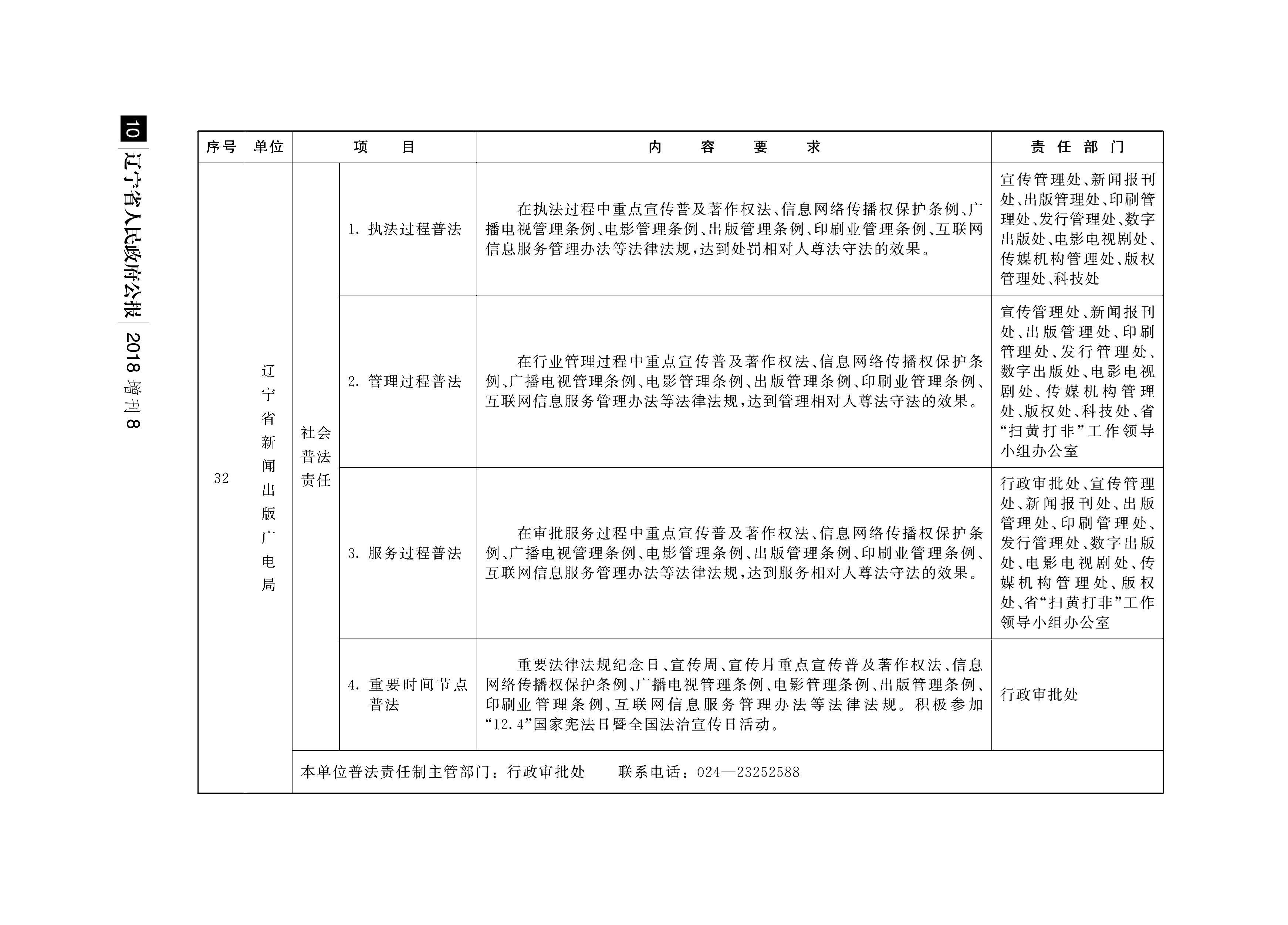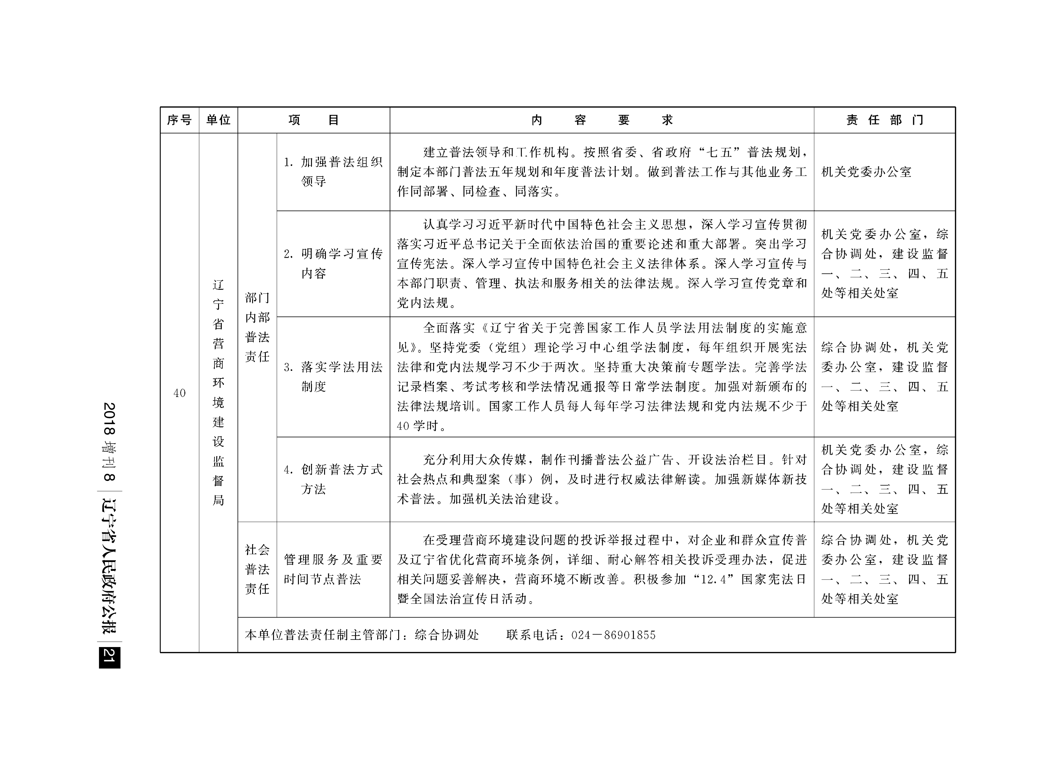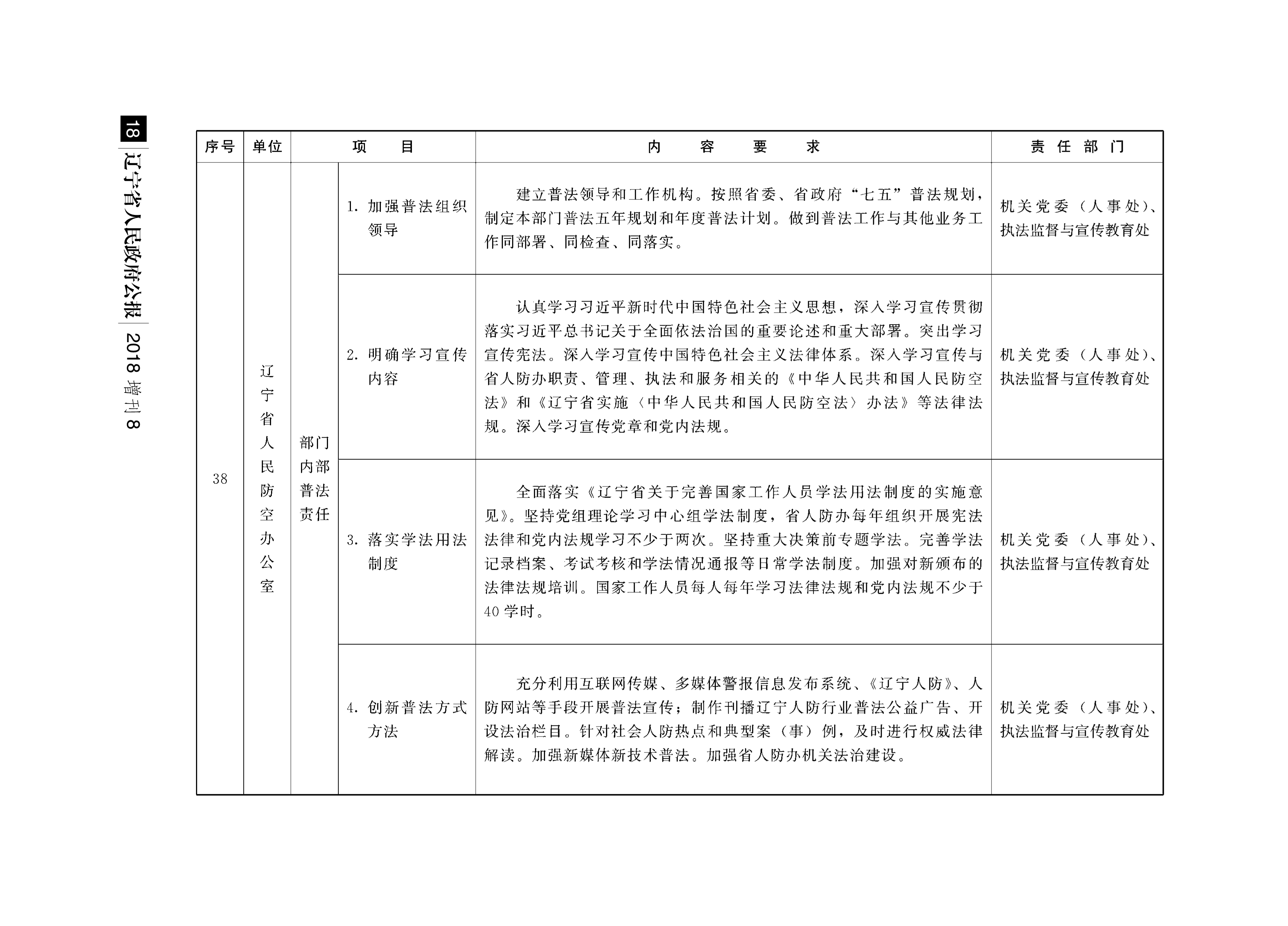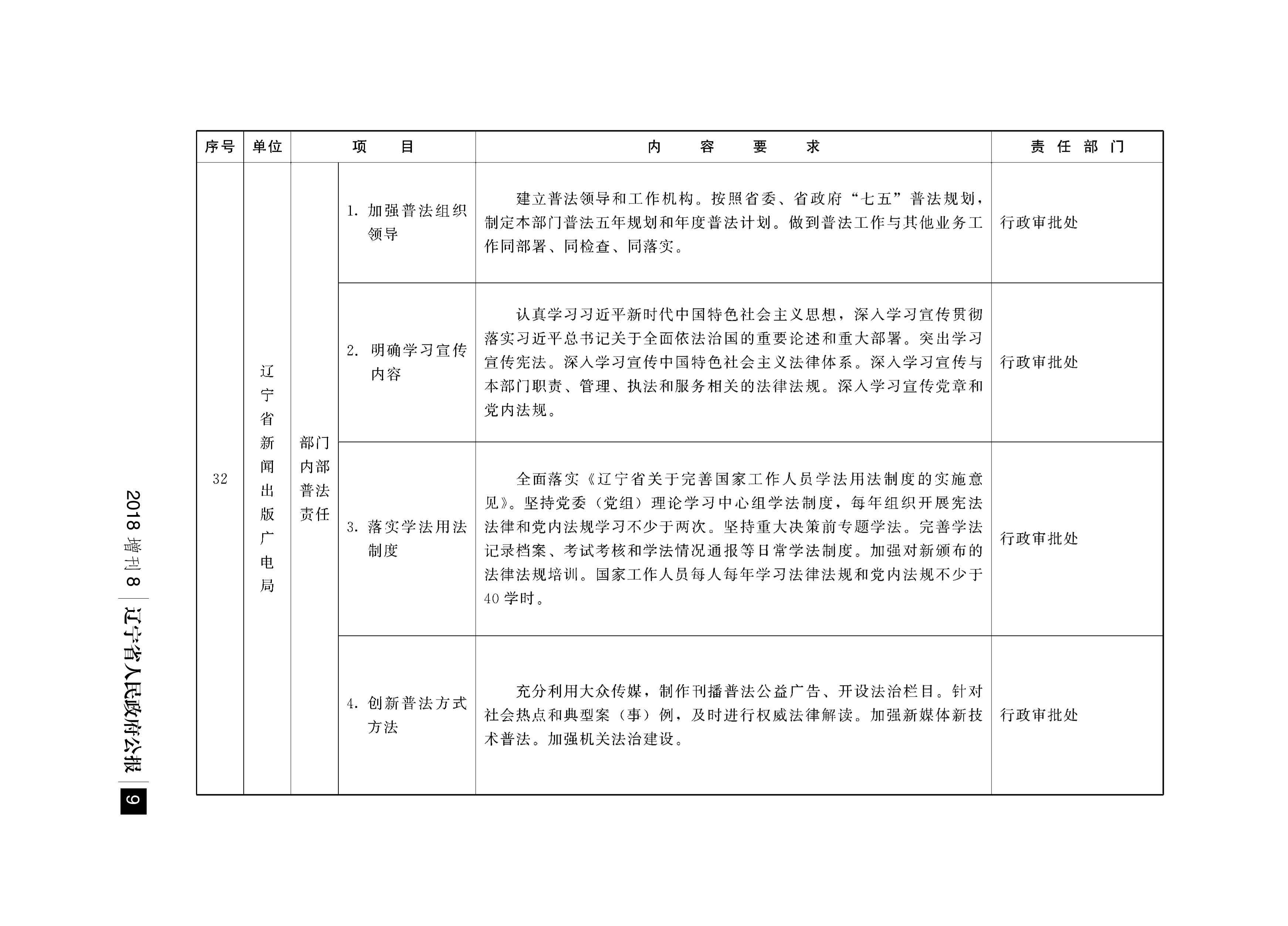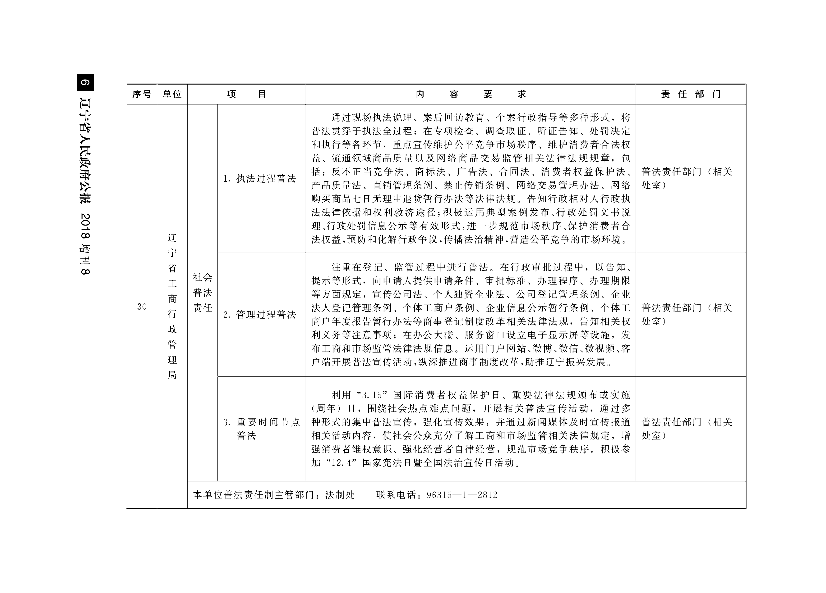 建立普法责任清单制度,是贯彻落实国家机关“谁执法谁普法”普法责任制的重要举措。普法责任清单明确了国家机关应当承普法工作责任,是开展普法工作的重要遵循。国家机关要把普法作为法治辽宁、平安辽宁建设的基础性工作,切实纳入本部门本单位工作总体安排,做到与其他业务工作同部署、同检查、同落实,努力在全社会形成尊法学法守法用法的浓厚氛围。按照普法责任制要求,建立健全普法领导和工作机构,明确普法任务和工作要求,制定普法中长期规划和年度普法计划,明确责任部门、责任人员和时限,并根据相关法律法规、规范性文件的调整,及时进行补充完善。