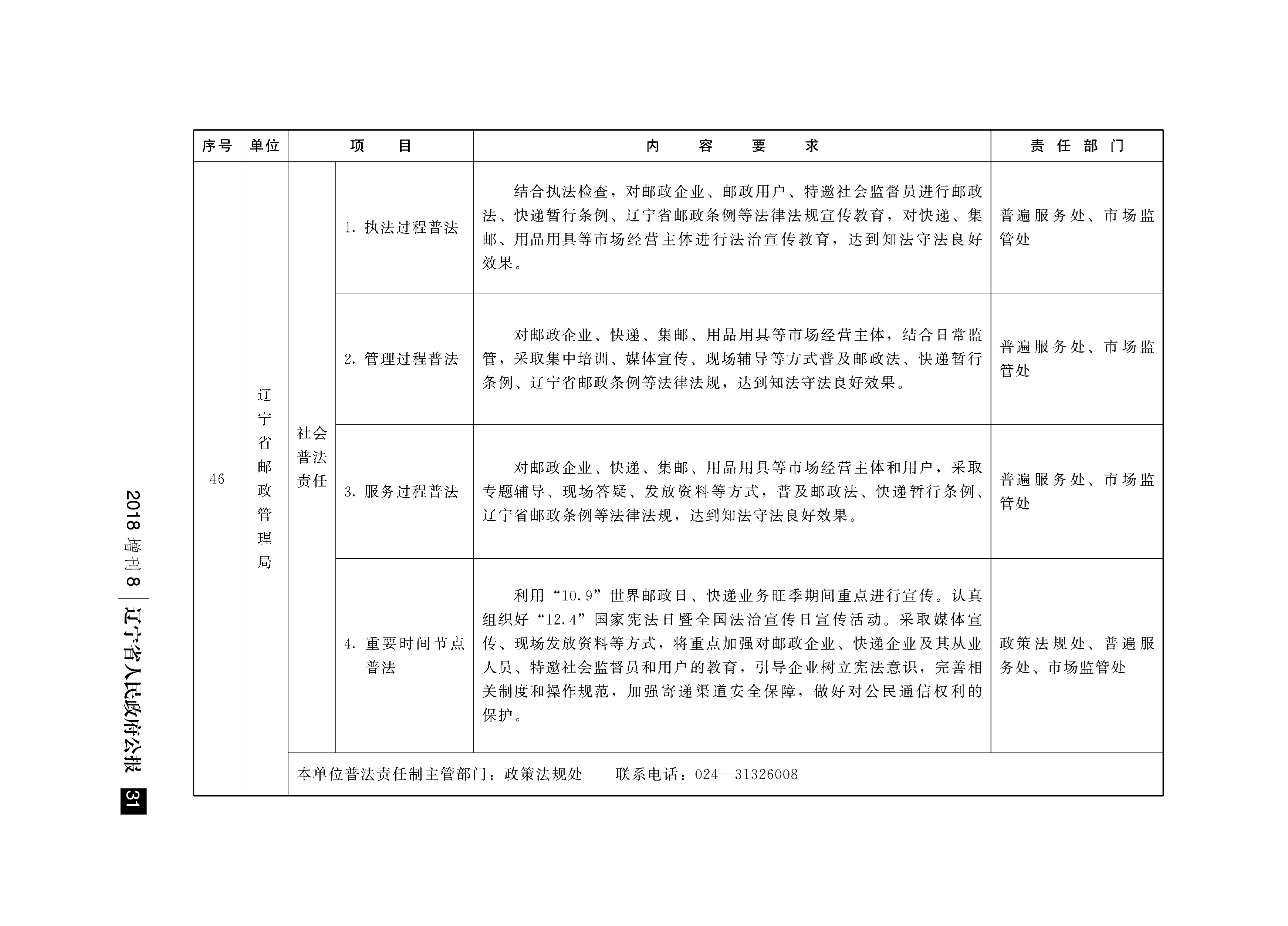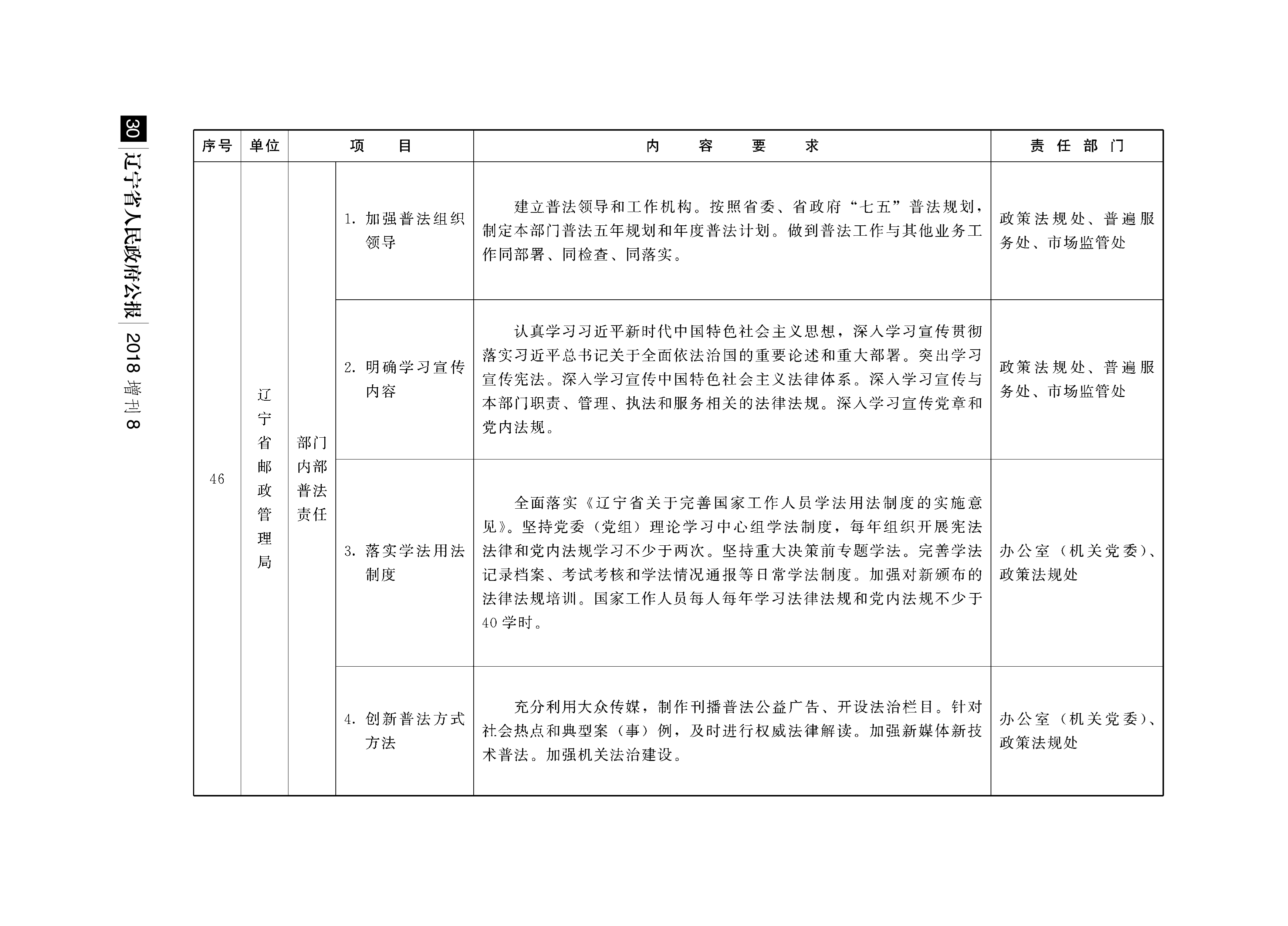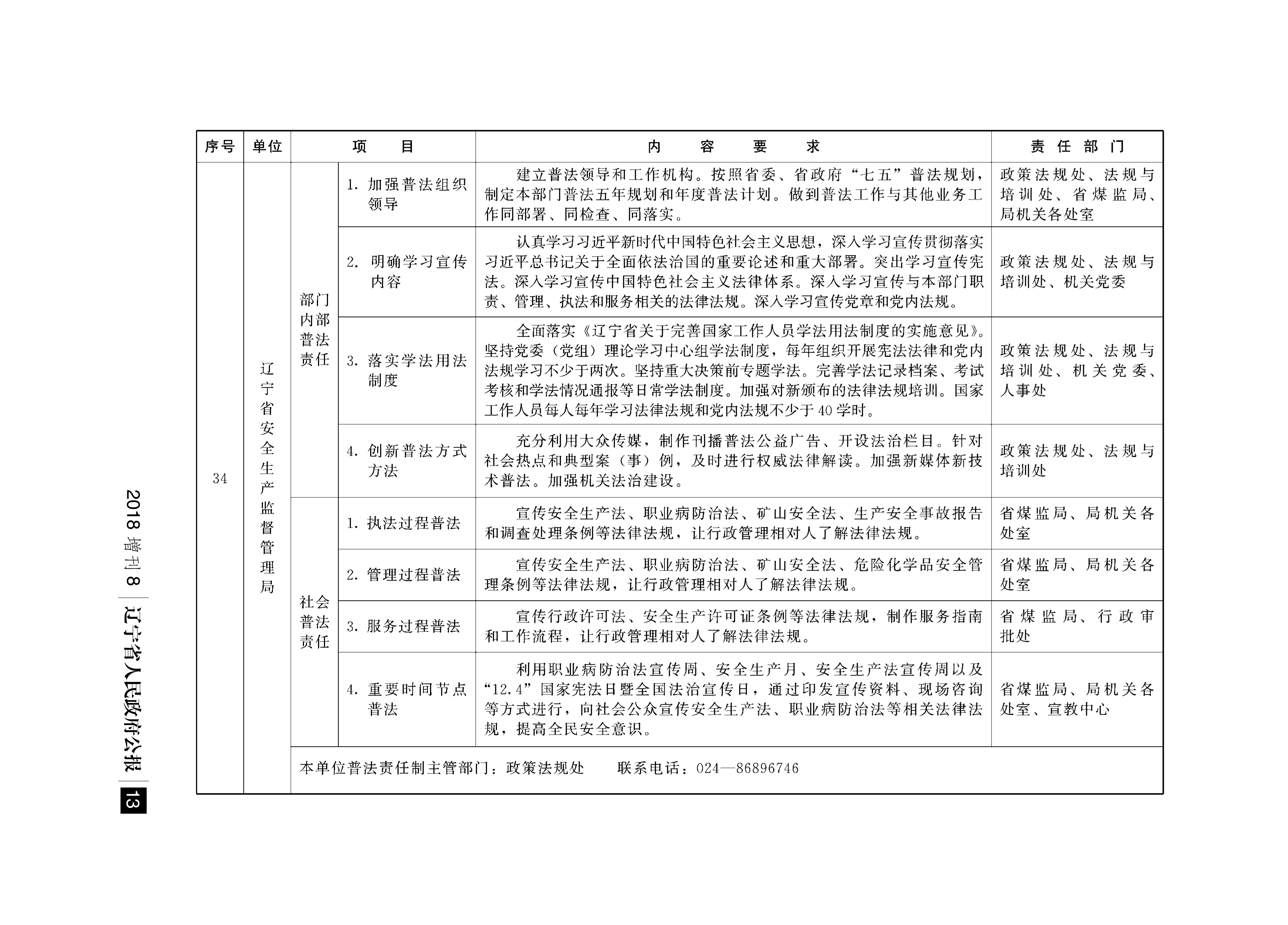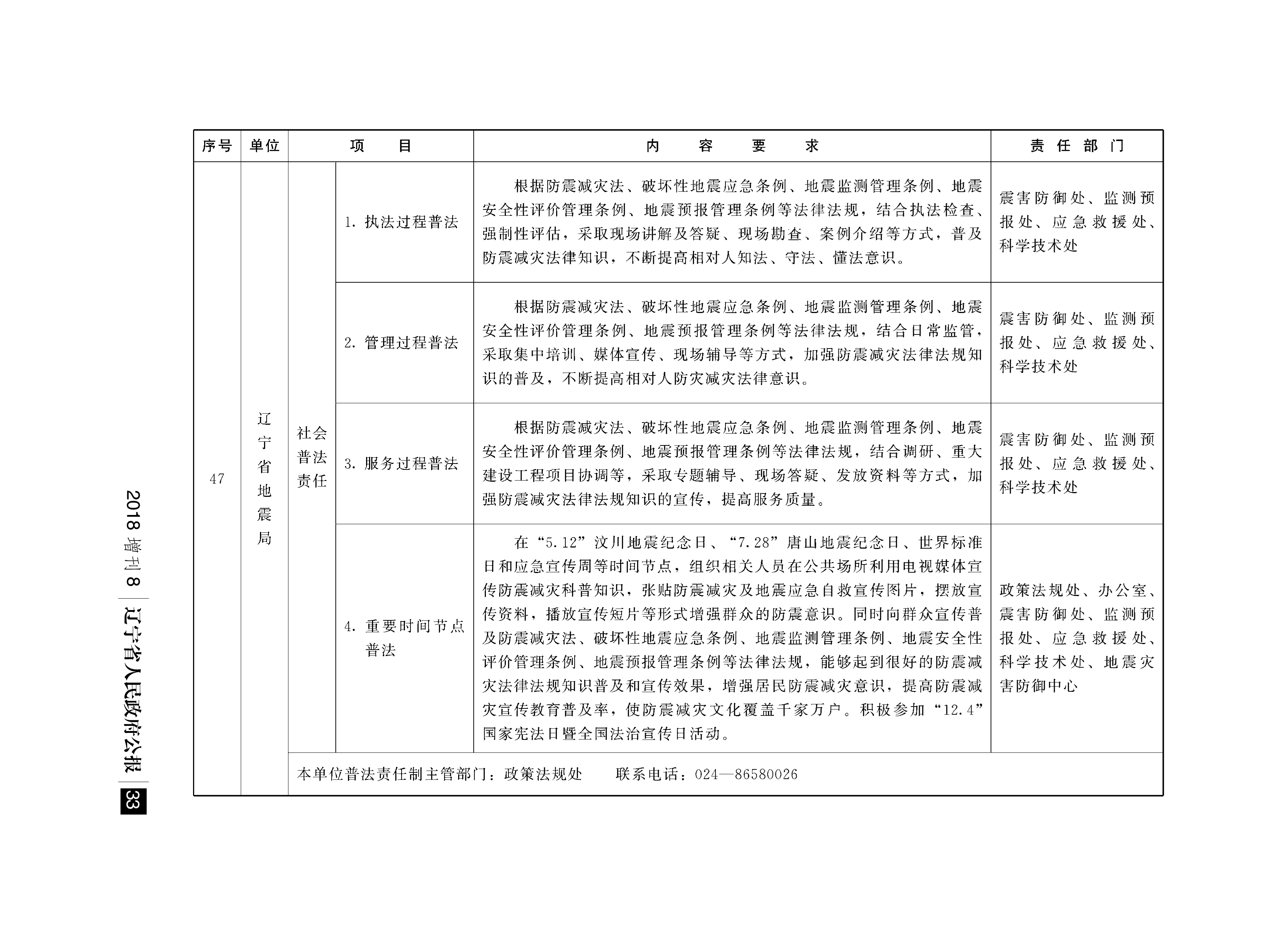 建立普法责任清单制度,是贯彻落实国家机关“谁执法谁普法”普法责任制的重要举措。普法责任清单明确了国家机关应当承普法工作责任,是开展普法工作的重要遵循。国家机关要把普法作为法治辽宁、平安辽宁建设的基础性工作,切实纳入本部门本单位工作总体安排,做到与其他业务工作同部署、同检查、同落实,努力在全社会形成尊法学法守法用法的浓厚氛围。按照普法责任制要求,建立健全普法领导和工作机构,明确普法任务和工作要求,制定普法中长期规划和年度普法计划,明确责任部门、责任人员和时限,并根据相关法律法规、规范性文件的调整,及时进行补充完善。