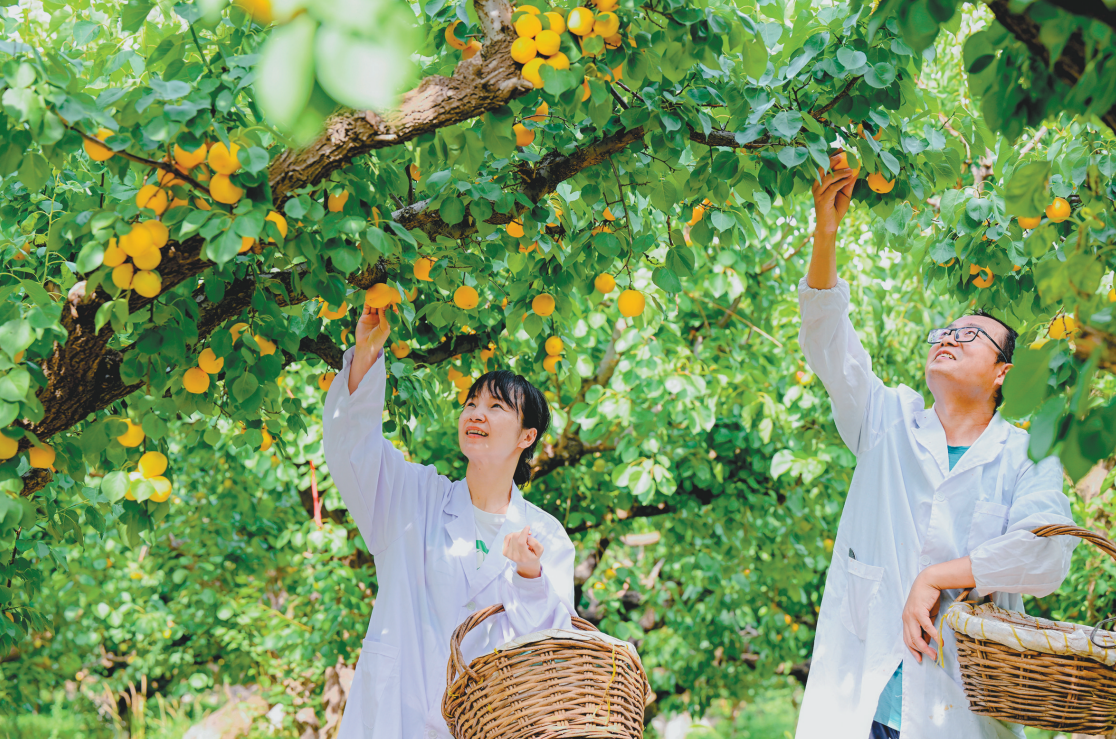 七月上旬,位于营口市鲅鱼圈区熊岳镇的辽宁省农科院果树研究所国家级李杏资源圃内,八百多种杏陆续进入成熟期,科研人员忙着进行果实品质性状鉴定评价等工作。依托世界上品种最全的李杏种质资源圃,这里李杏资源保存及创新利用居国际领先水平,培育出多个新品种。图为科研人员在资源圃内采收成熟的杏果实样本。