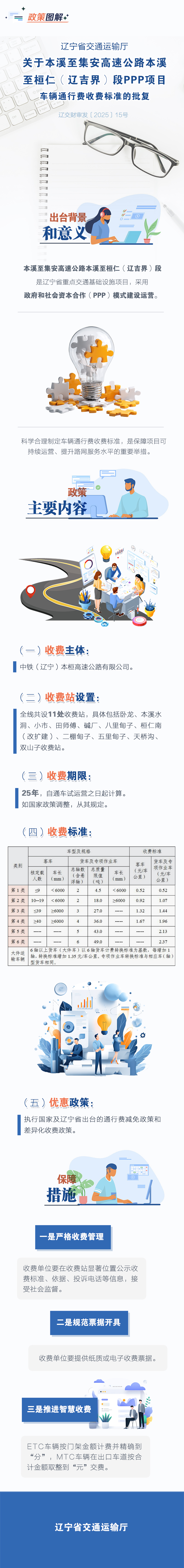 省交通运输厅:《关于本溪至集安高速公路本溪至桓仁(辽吉界)段PPP项目车辆通行费收费标准的批复》政策图解