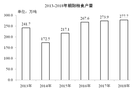 全年粮食总产量277.7万吨。其中,玉米产量239.2万吨。全年油料产量1.1万吨,蔬菜及食用菌产量210.0万吨。全年水果产量35.6万吨。