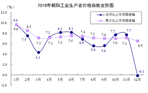 全年工业生产者出厂价格比上年上涨6.5%,其中生产资料出厂价格上涨6.9%,生活资料出厂价格上涨0.9%;轻工业上涨0.4%,重工业上涨7.0%;初级产品上涨4.9%,中间产品上涨7.6%,最终产品上涨2.5%;采矿业上涨4.9%,制造业上涨7.8%,电力、热力、燃气及水生产和供应业上涨0.7%。工业生产者购进价格比上年上涨5.9%,其中初级产品上涨2.3%,中间产品上涨11.0%;燃料、动力类上涨3.5%,黑色金属材料类上涨9.4%,有色金属材料及电线类上涨11.2%,化工原料类上涨0.2%,木材及纸浆类上涨12.5%,建筑材料及非金属类上涨3.0%,其他工业原材料及半成品类上涨2.2%,农副产品类上涨0.1%,纺织原料类上涨8.7%。