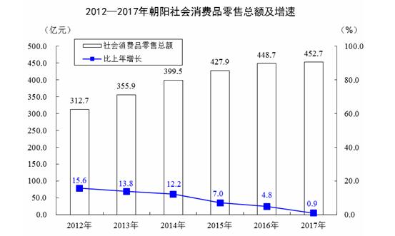 全年社会消费品零售总额452.7亿元,比上年增长0.9%。从不同地域看:城镇消费品零售额407.8亿元,增长0.6%;乡村消费品零售额44.9亿元,增长3.3%。从消费形态看:批发零售业零售额408.9亿元,增长0.6%,其中限额以上零售额69.3亿元,下降1.4%;住宿餐饮业零售额43.8亿元,增长3.4%,其中限额以上零售额3亿元,下降32.9%。