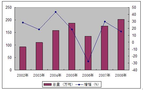 图2 2002-2008年粮食产量及其增长速度