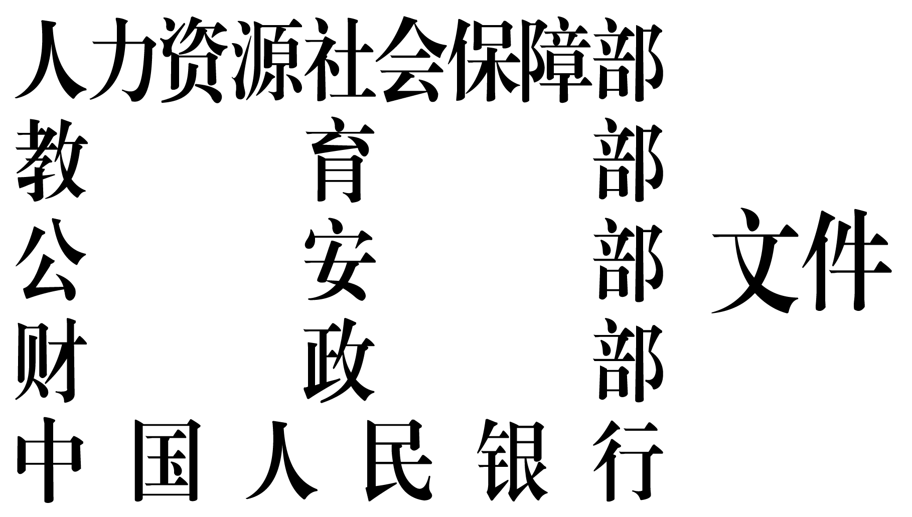 各省、自治区、直辖市及新疆生产建设兵团人力资源社会保障厅(局)、教育厅(委、局)、公安厅(局)、财政厅(局),中国人民银行上海总部、各分行、营业管理部、各省会(首府)城市中心支行、各副省级城市中心支行,部属各高等学校、部省合建各高等学校: