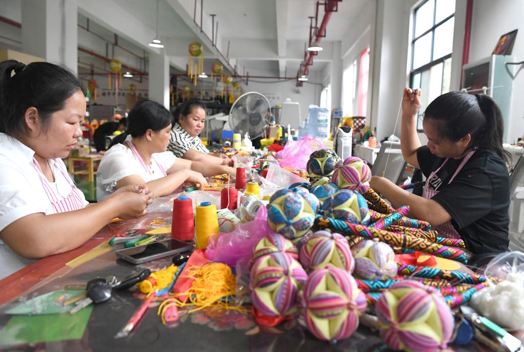 对于当地人来说,绣球不仅代表古老的手工艺,更是增收致富的手段,让农村妇女能够就近就业和居家灵活就业。新华社记者 周华 摄