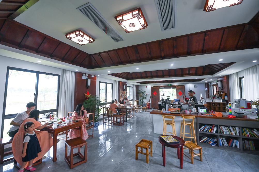 游客在浙江省嘉兴市南湖区凤桥镇联丰村的咖啡馆里休息(2023年6月14日摄)。 新华社记者 徐昱 摄