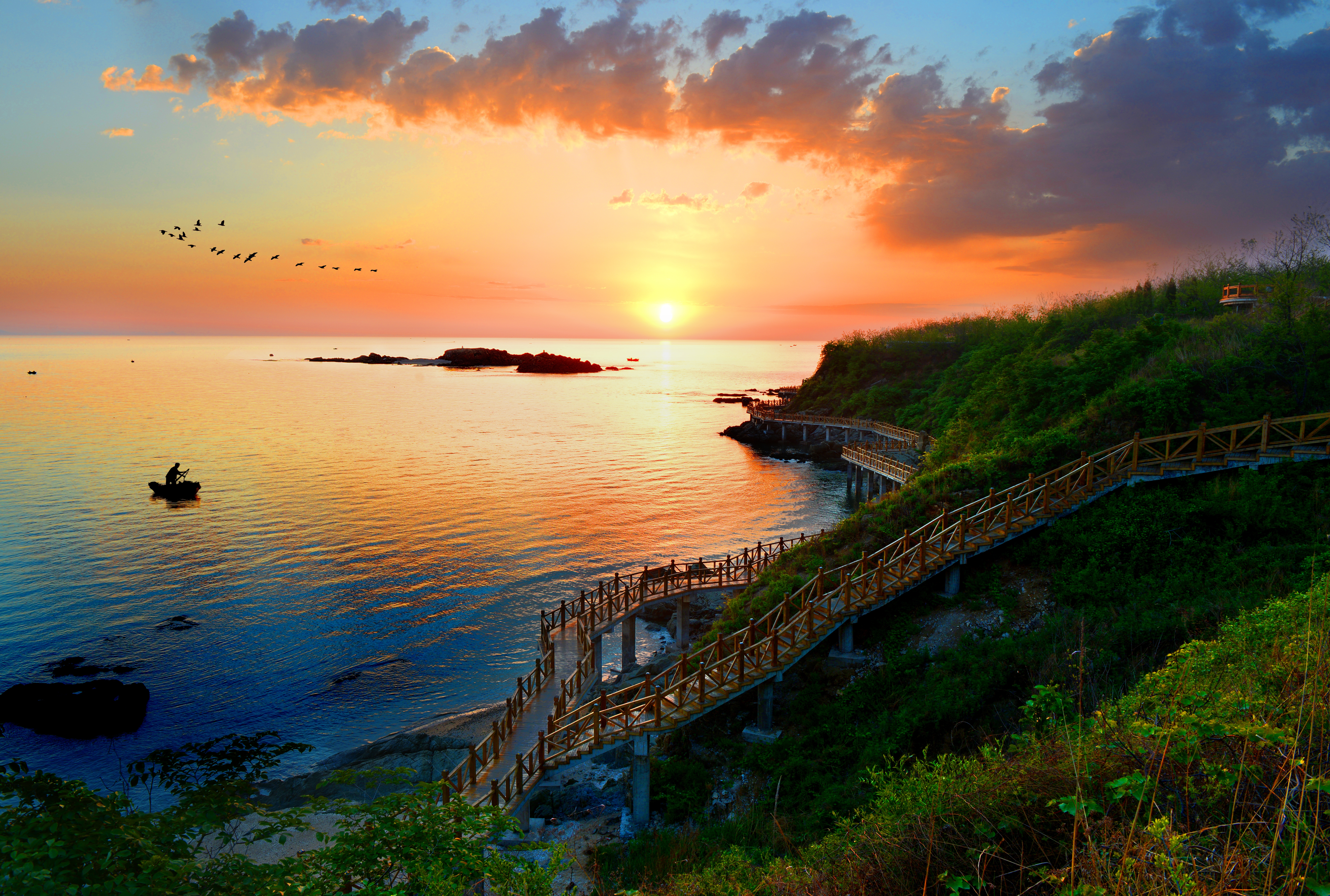 觉华岛又名菊花岛,位于辽宁省兴城市境内觉华岛乡辖区,是国家AAAA级景区,素有“北方佛岛”之称,有南有普陀山,北有觉华岛之美誉。岛屿位于兴城海滨西南方向,距陆地12.5公里,呈不规则长葫芦形,主岛面积13.5平方公里,地势南高北低,最高海拔198.2米,海岸线长27公里,是辽东湾第一大岛屿。觉华岛山石秀美,古树参天,南有张家山岛和杨家山岛,北有磨盘山岛,一大三小相映成趣。岛上名胜古迹众多,有辽代大龙宫寺、八角井、唐王洞;有明代古营城、峰塔寺、大悲阁遗址;有菩提文化园、东海岸景观公园、九井石景区、南海浴场等人文景观。