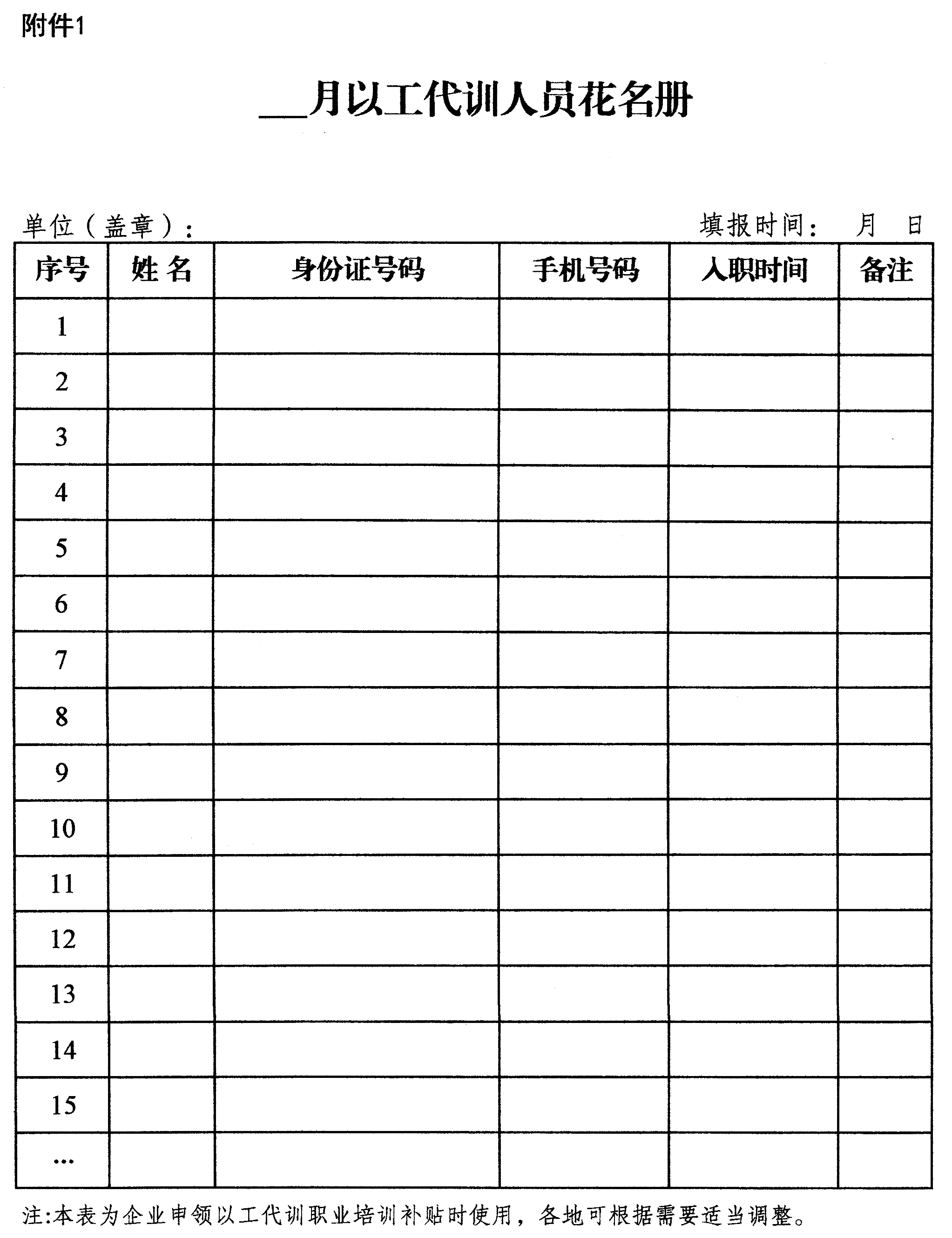 附件:1.月以工代训人员花名册