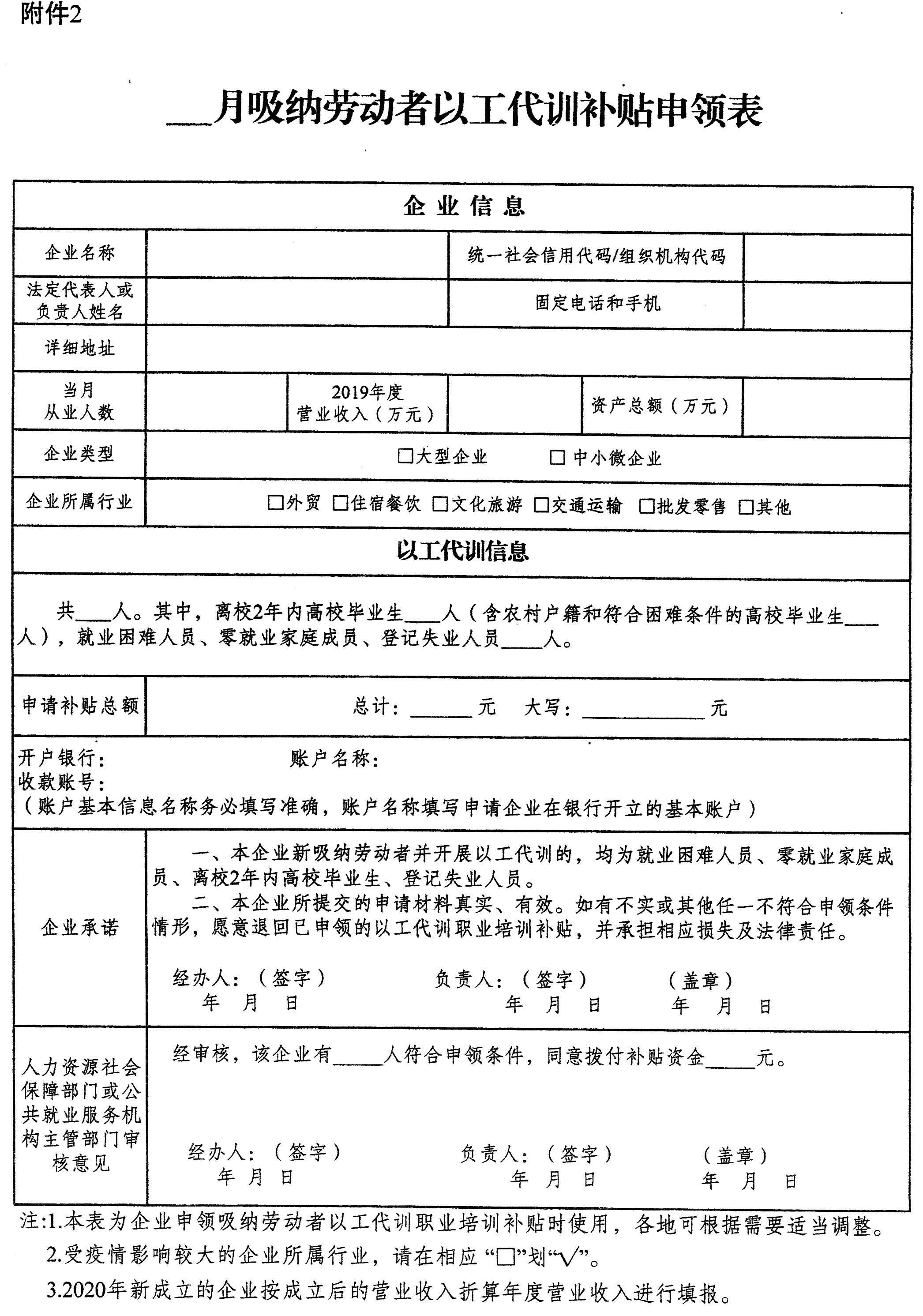 2.月吸纳劳动者以工代训补贴申领表