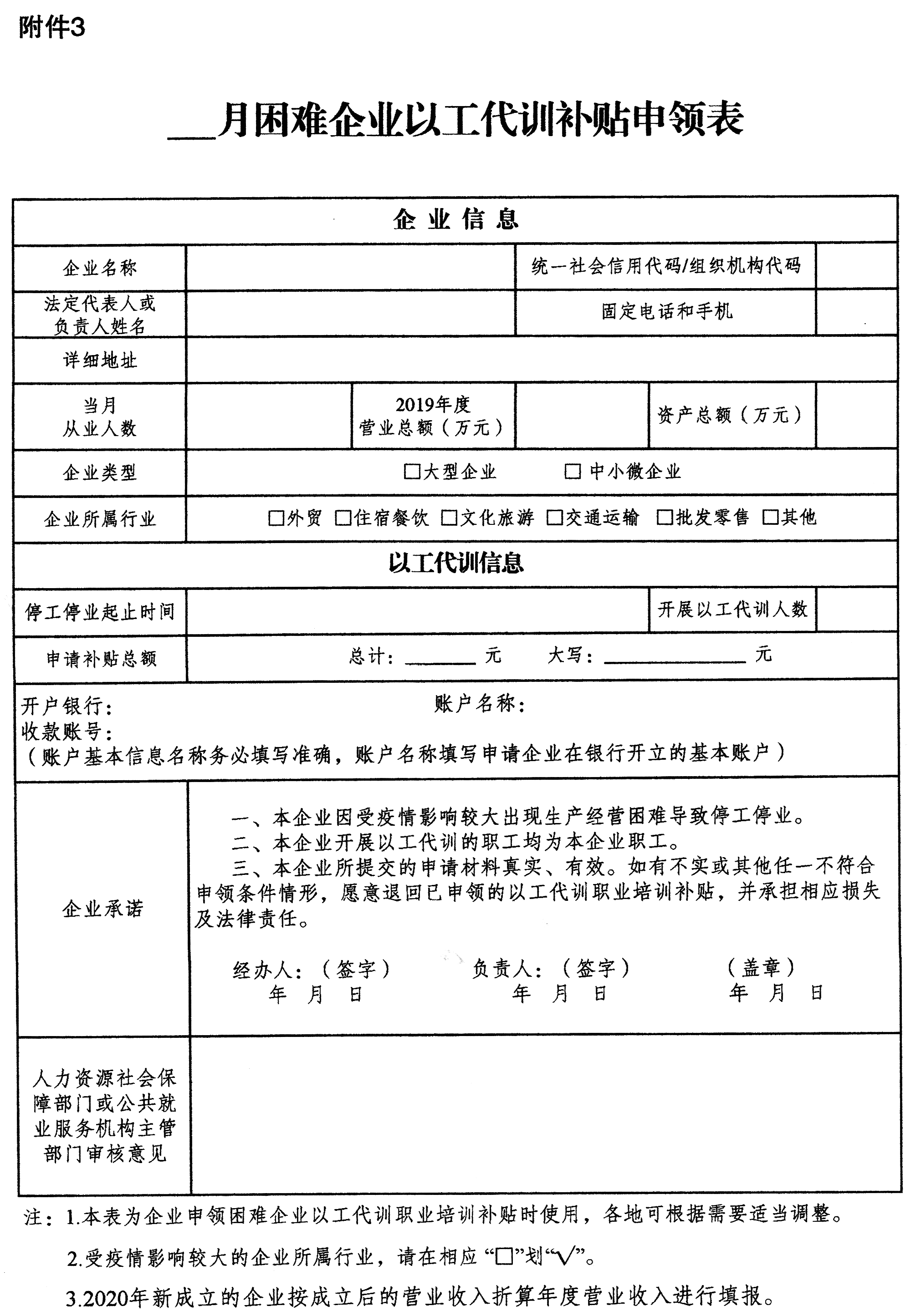 3.月困难企业以工代训补贴申领表
