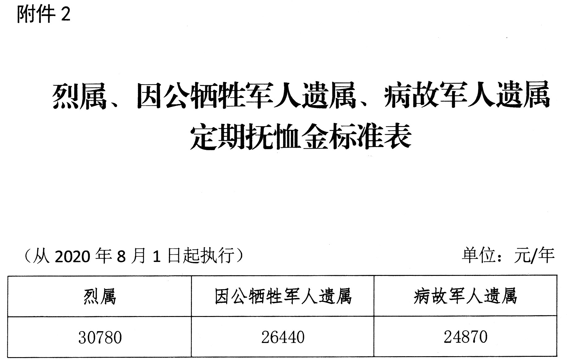 根据《退役军人事务部 财政部关于调整部分优抚对象等人员抚恤和生活补助标准的通知》(退役军人部发〔2020〕38号)精神,报经省政府同意,决定从2020年8月1日起调整部分优抚对象等人员抚恤和生活补助标准。现就有关问题通知如下: