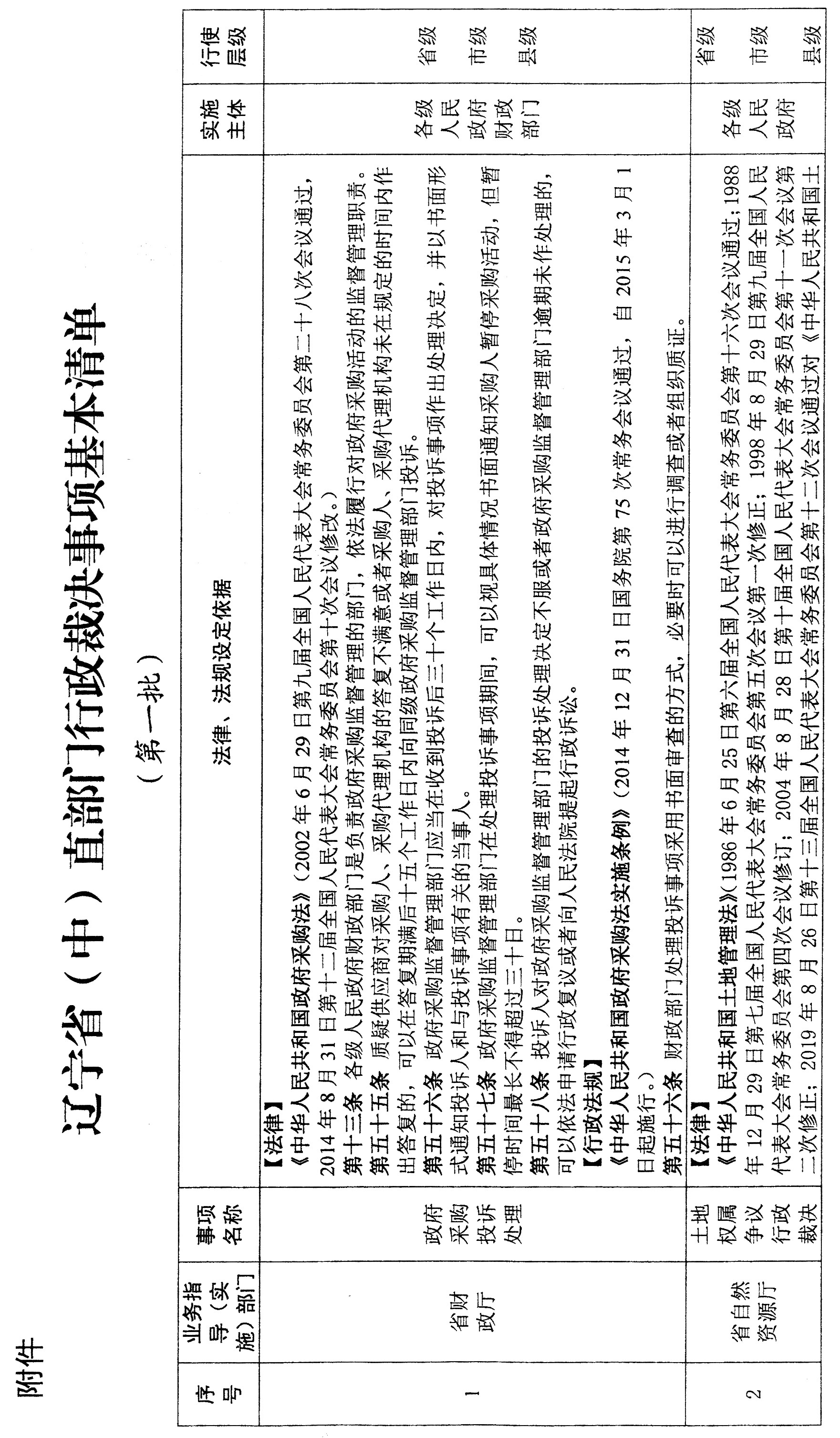 附件:辽宁省(中)直部门行政裁决事项基本清单(第一批)