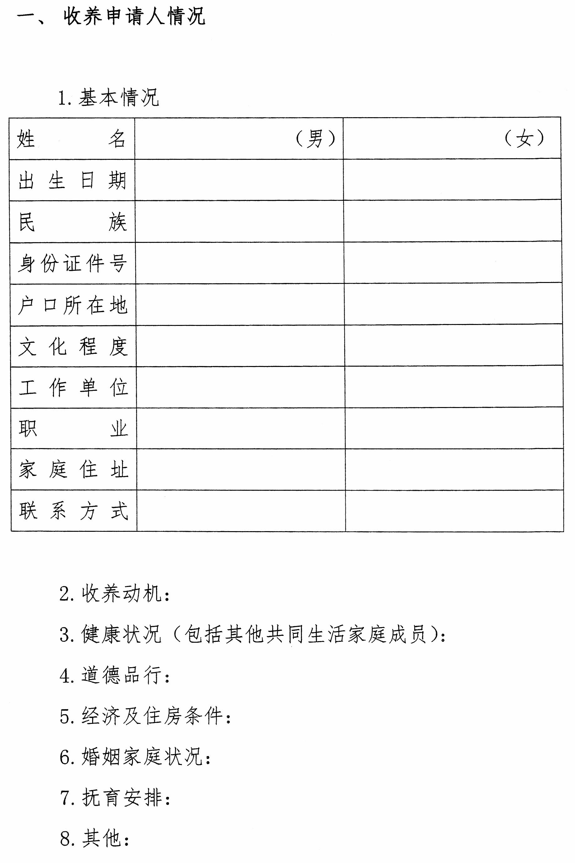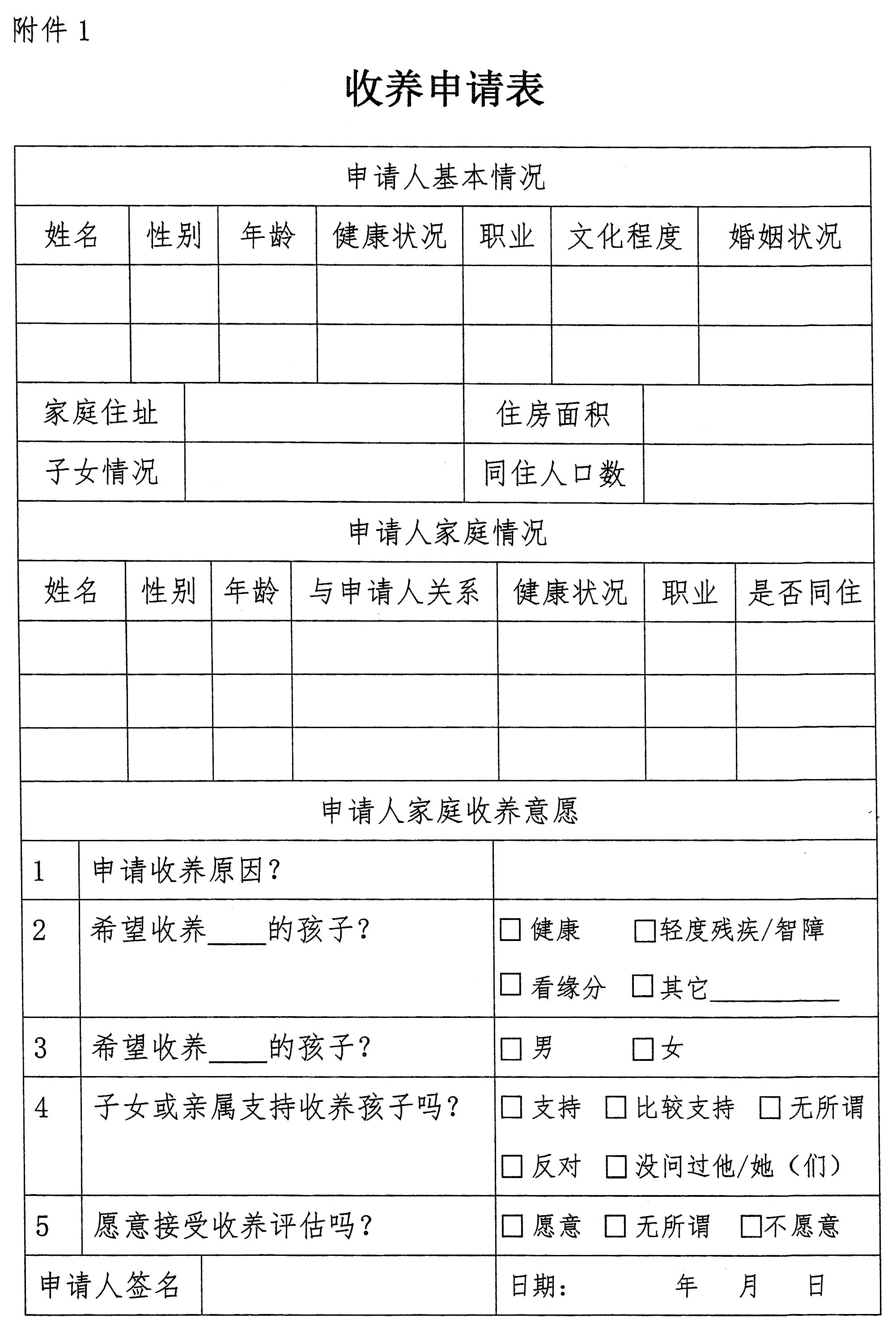 附件:1.收养申请表