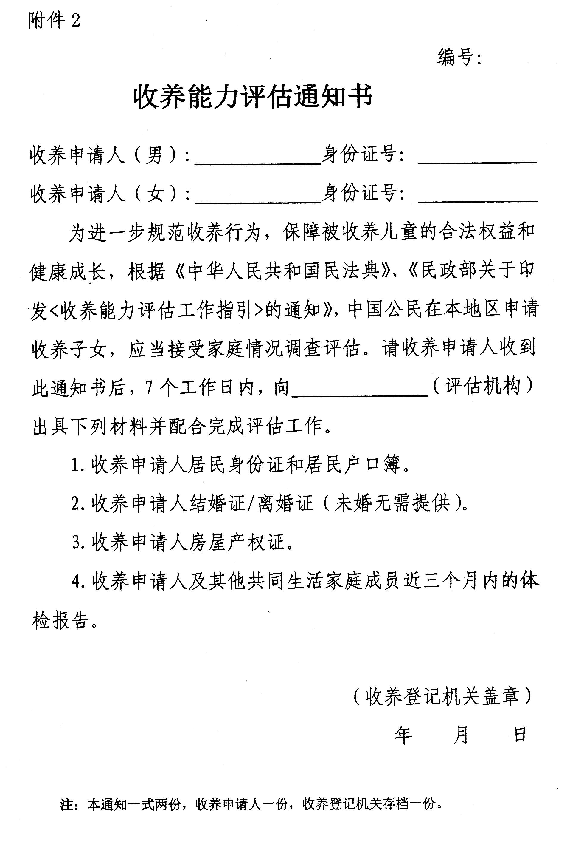 2.收养能力评估通知书