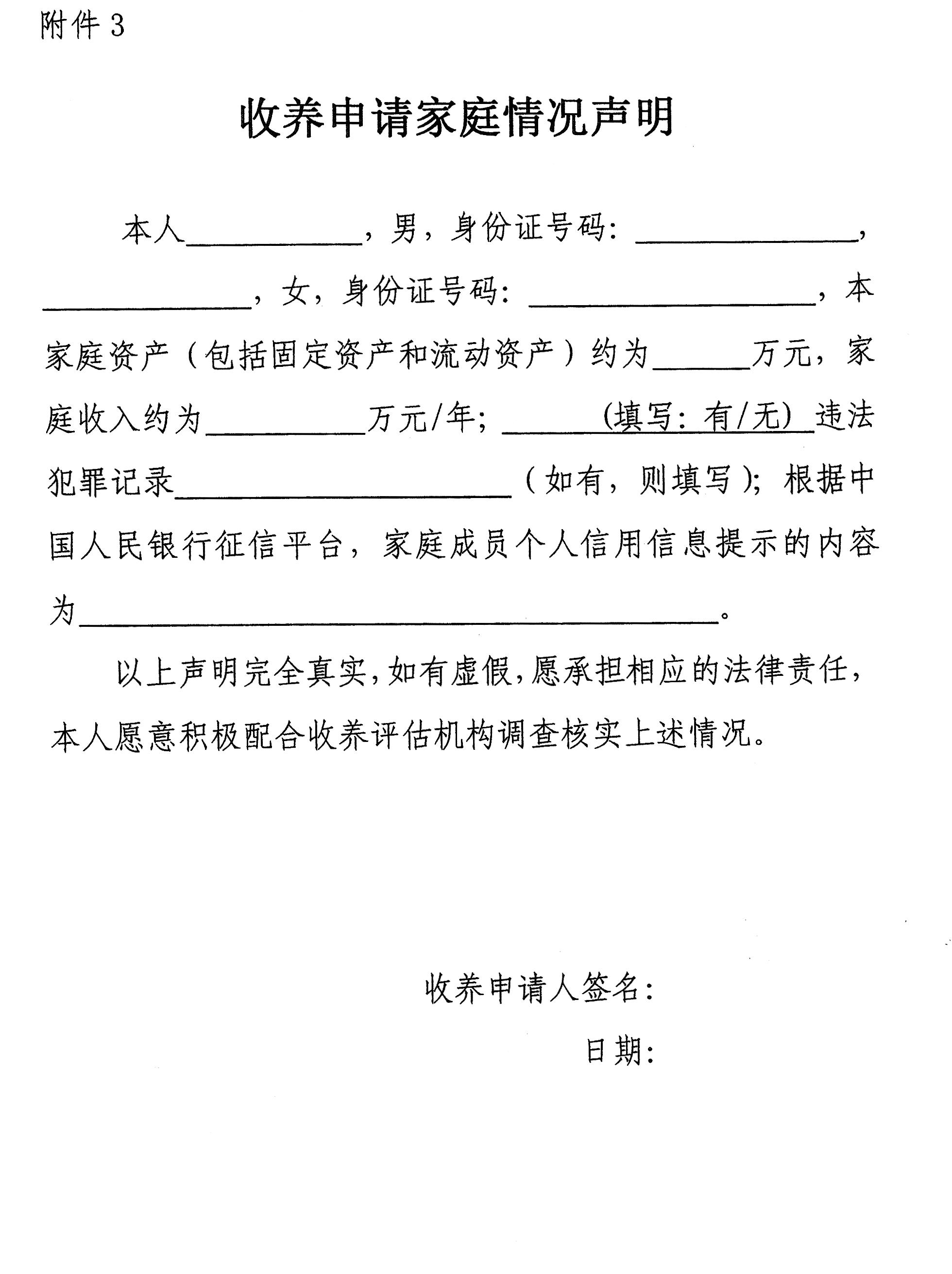 3.收养申请家庭情况声明